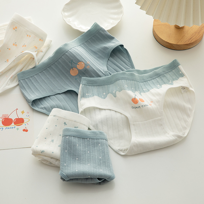 달콤한 체리 면 속옷 여성용 스레드 부드러운 통기성 면 가랑이 팬티 중간 허리 학생 반바지 소녀스토어 가기