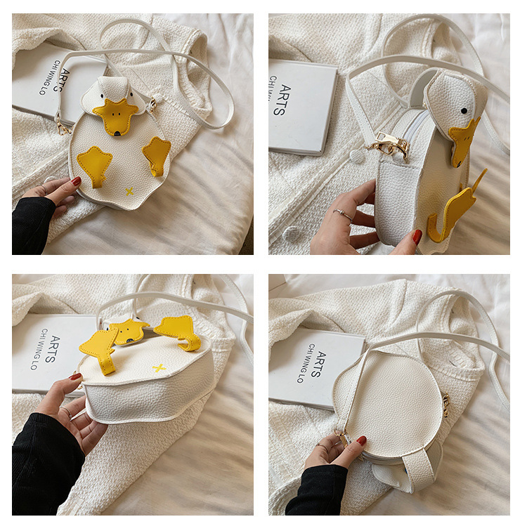 신선하고 귀여운 오리 가방 여성 가방 2023 새로운 겨울 대비 색상 리치 패턴 싱글 숄더 스티치 트렌디 크로스 바디 백