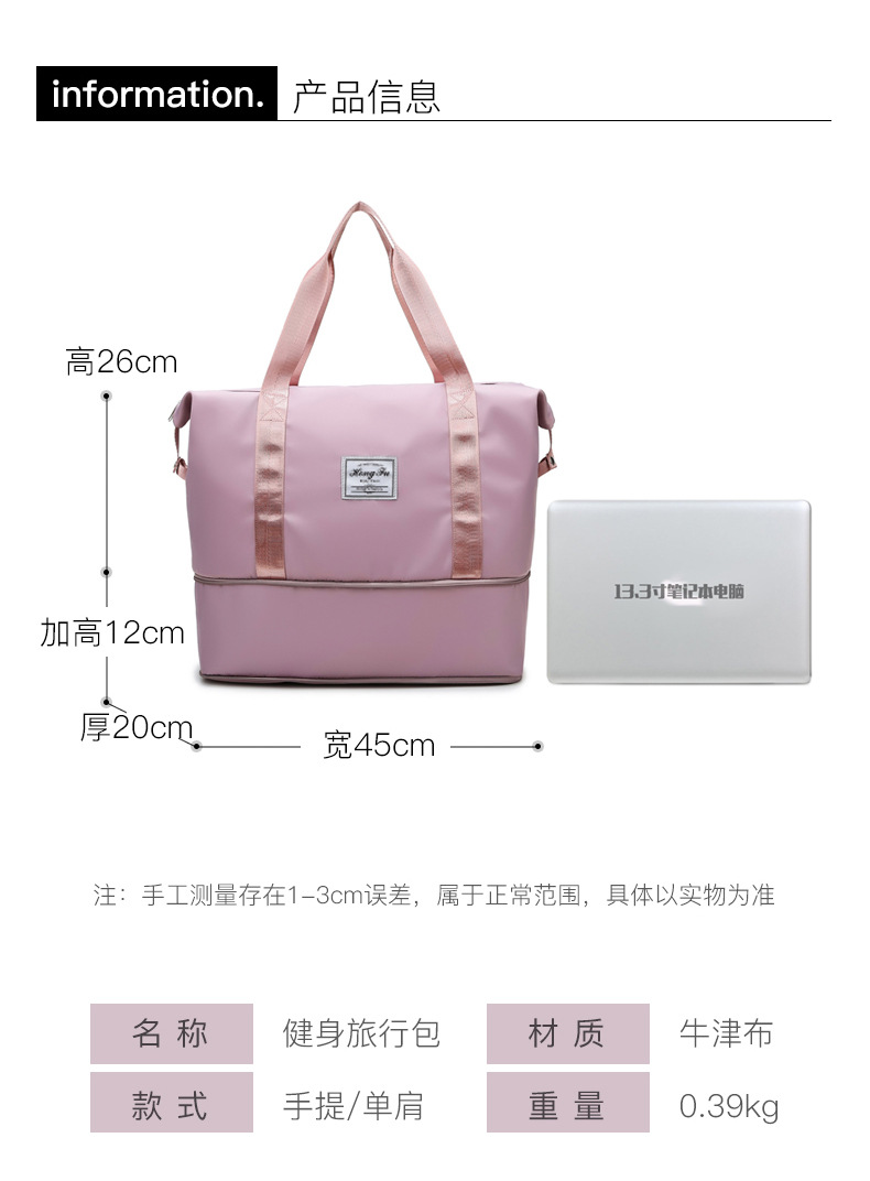 건조하고 젖은 분리 된 어깨 가방 확장 가방 요가 피트니스 가방 대용량 접이식 여행 가방 수하물 보관 가방