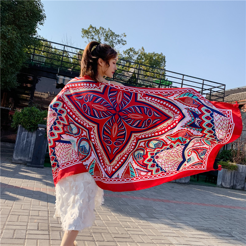 에스닉 스타일 스카프 대형 자외선 차단제 숄 여성용 여름 얇은 외부 스카프 Yunnan 모든 매치 해변 스카프 비치 스카프
