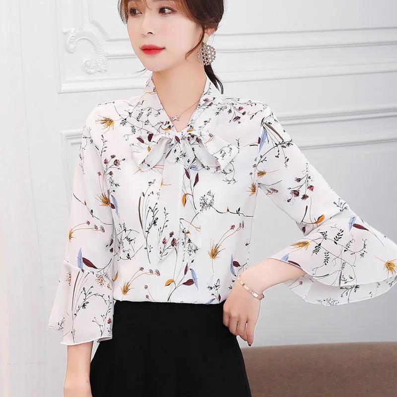 2021 봄 여름 여성용 새로운 반팔 쉬폰 셔츠 탑 트렌디 트렌디 한 트럼펫 슬리브 슈퍼 페어리 슬림 베이스 셔츠스토어 가기