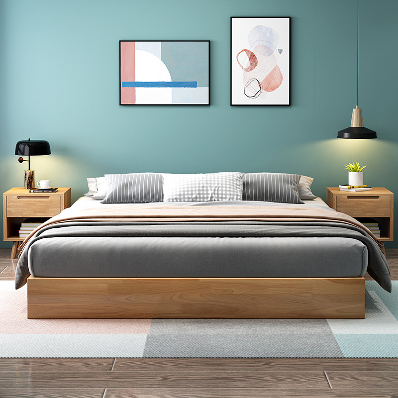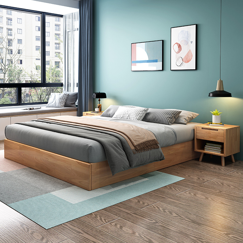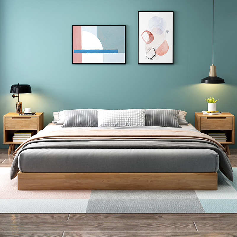 일본식 다다미 단단한 나무 침대 침대 침대 침대 작은 아파트 홈스테이 호텔 현대 간단한 북유럽 더블 침대 바닥 침대스토어 가기