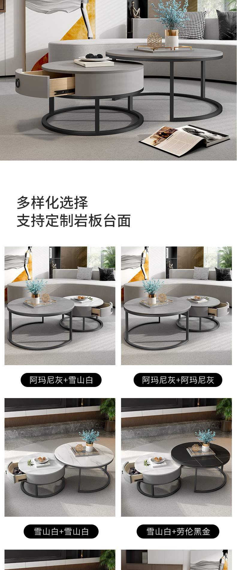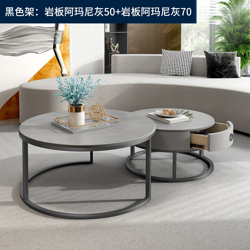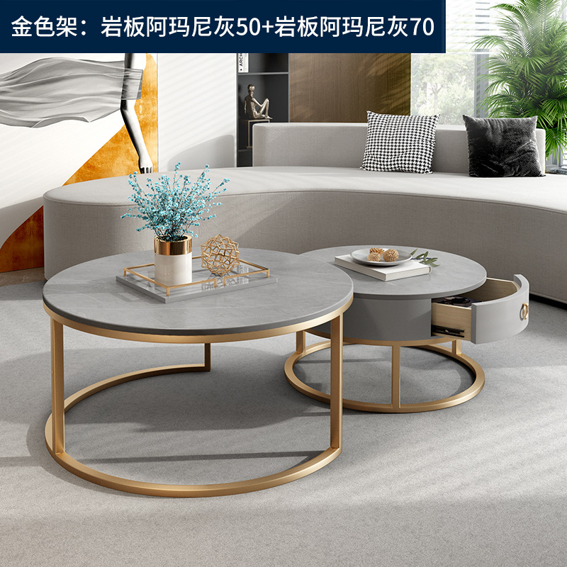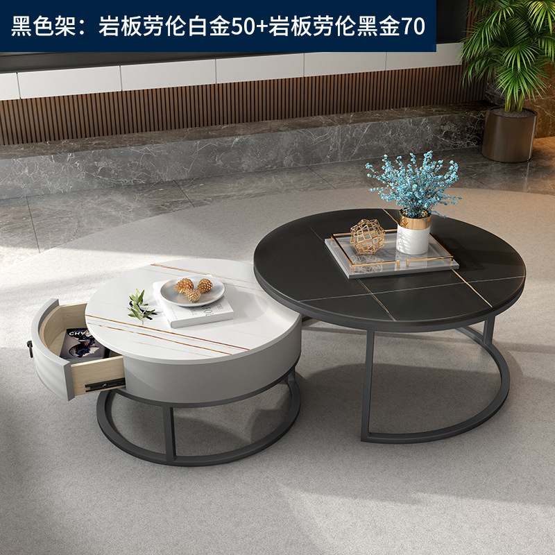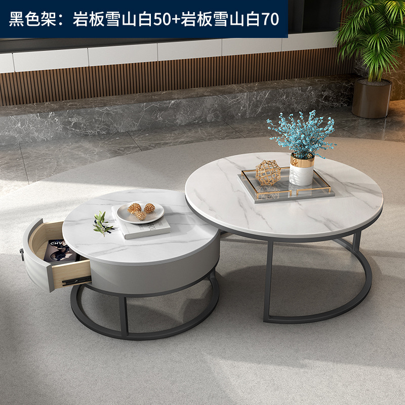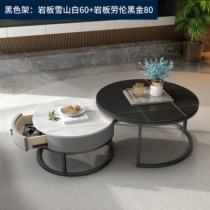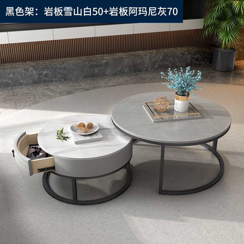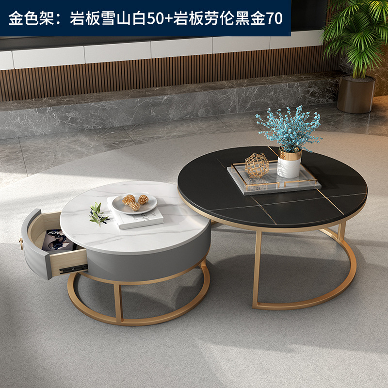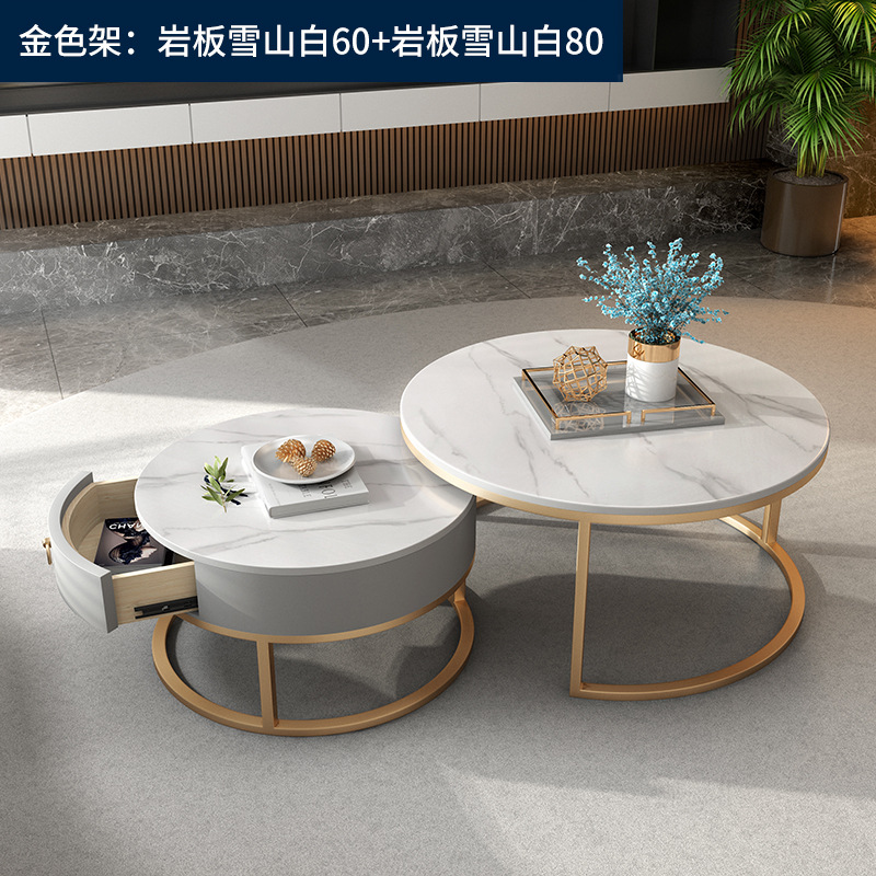 이탈리아 스타일 간단한 락 보드 커피 테이블 호텔 현대 텔레스코픽 커피 테이블 서랍 작은 아파트 거실 라운드 어머니와 아이 커피 테이블