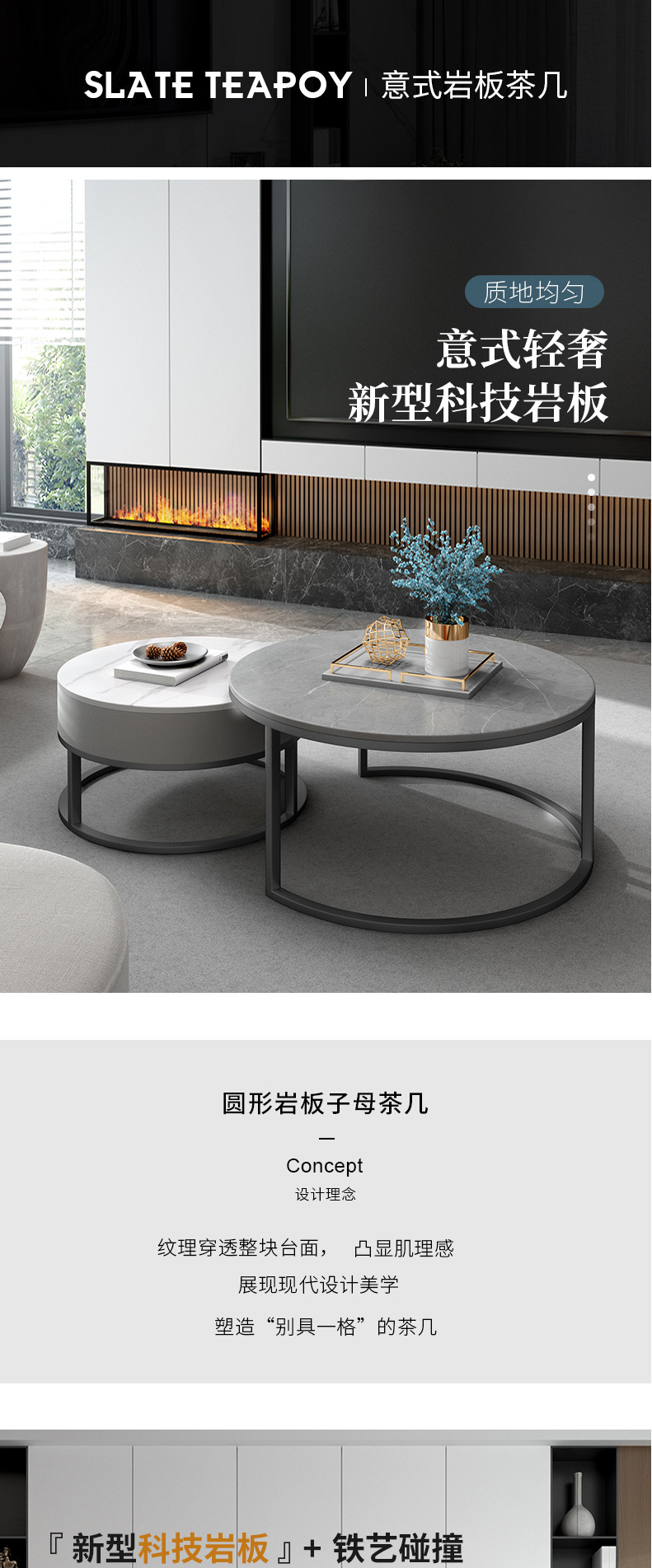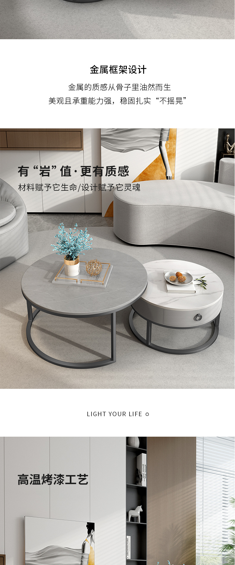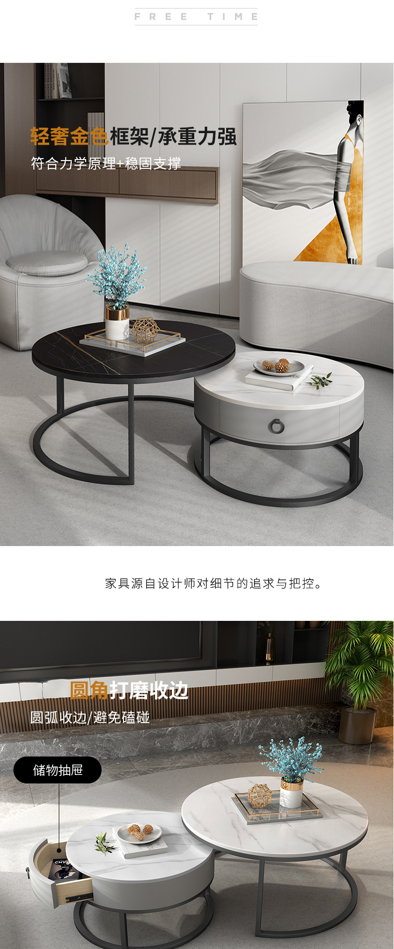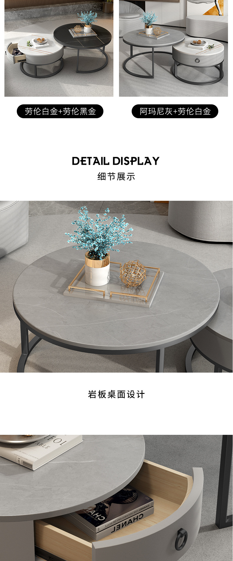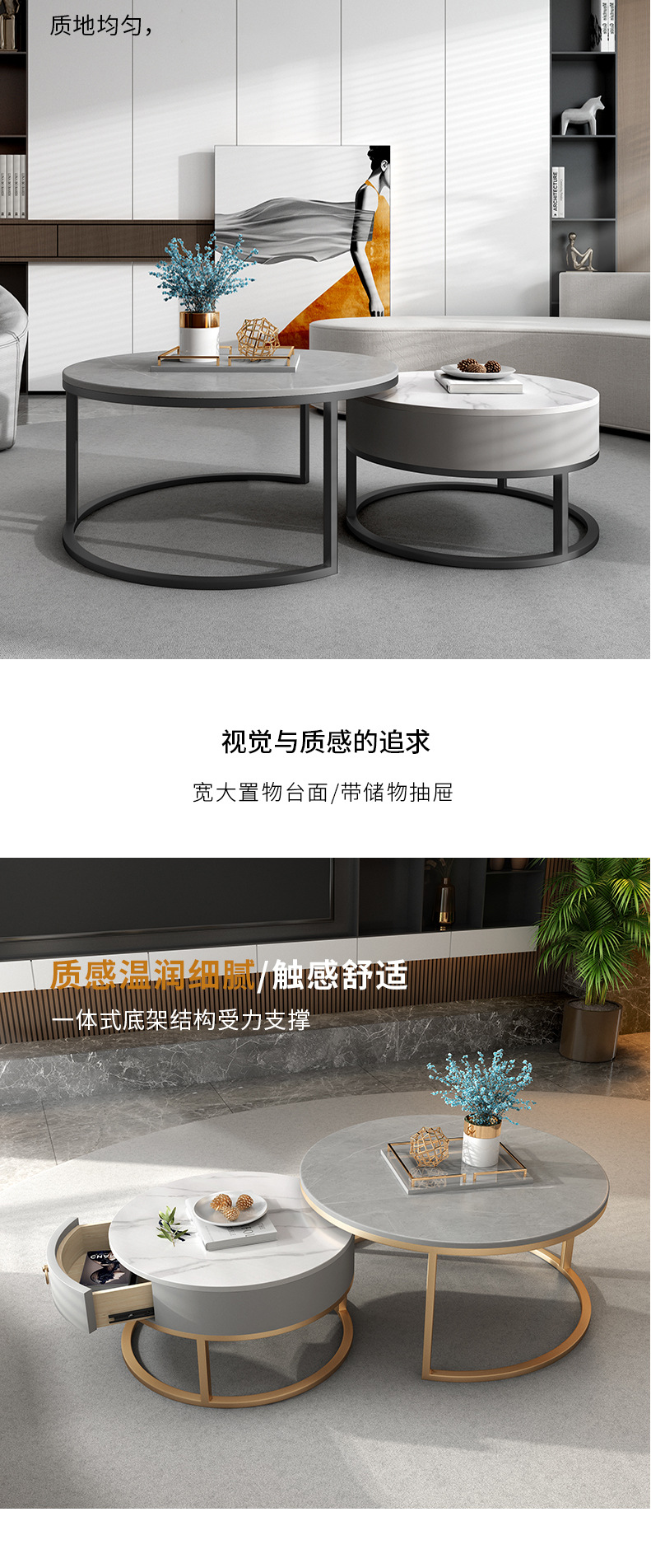 이탈리아 스타일 간단한 락 보드 커피 테이블 호텔 현대 텔레스코픽 커피 테이블 서랍 작은 아파트 거실 라운드 어머니와 아이 커피 테이블