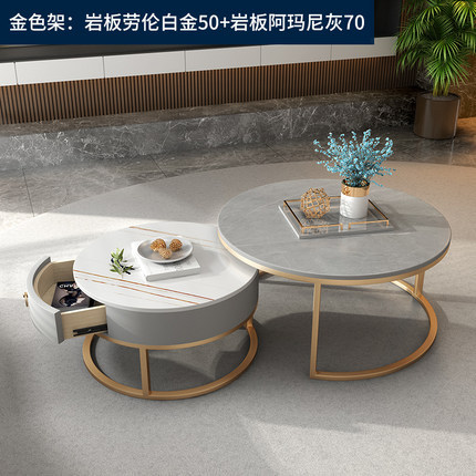 이탈리아 스타일 간단한 락 보드 커피 테이블 호텔 현대 텔레스코픽 커피 테이블 서랍 작은 아파트 거실 라운드 어머니와 아이 커피 테이블스토어 가기