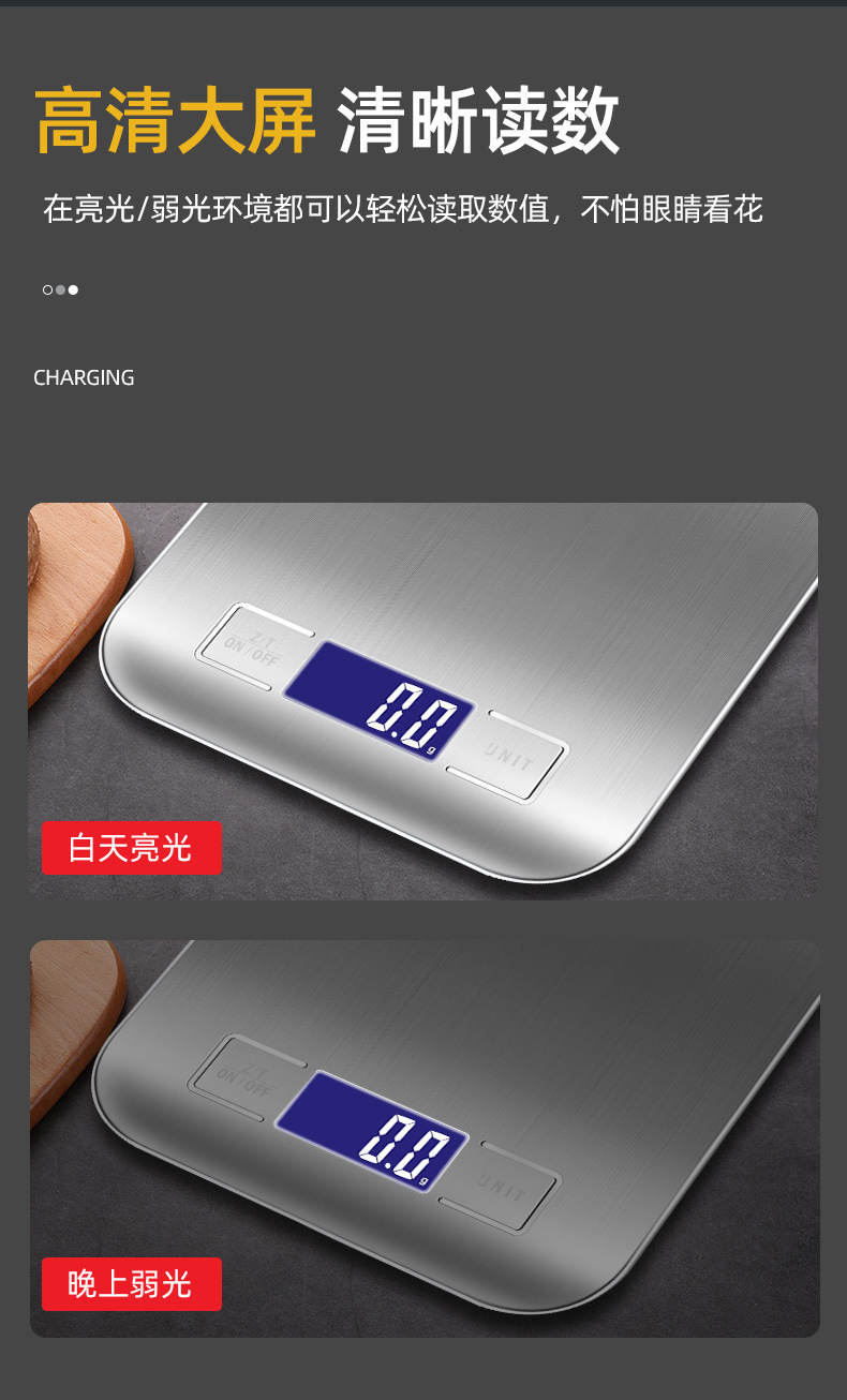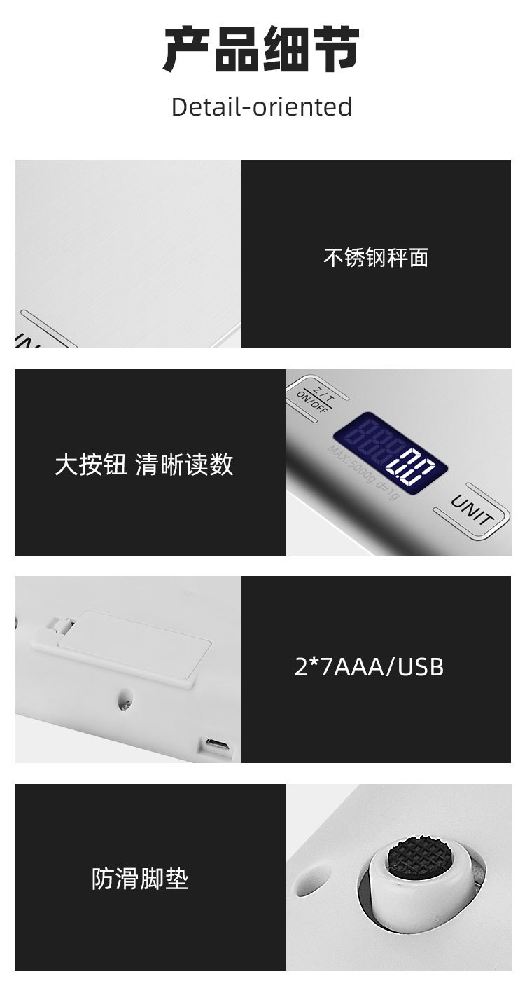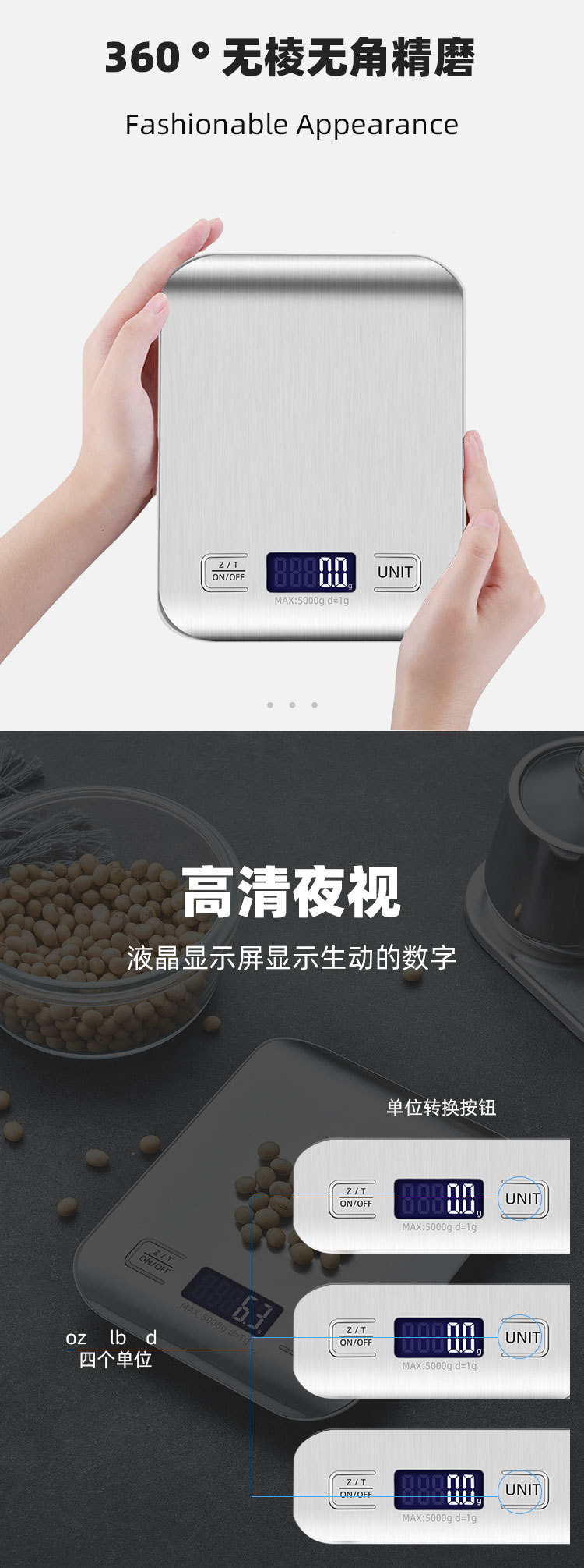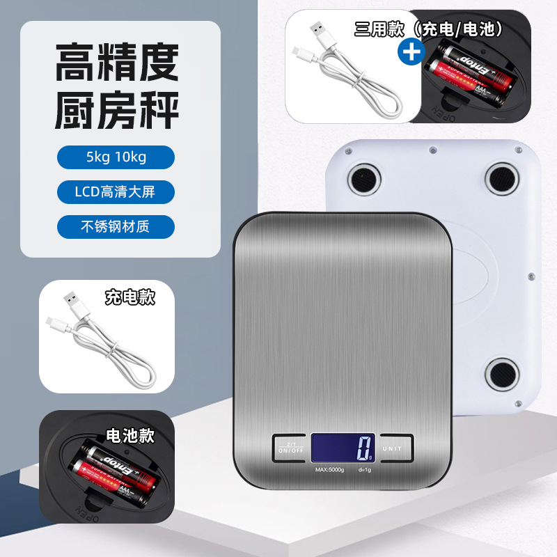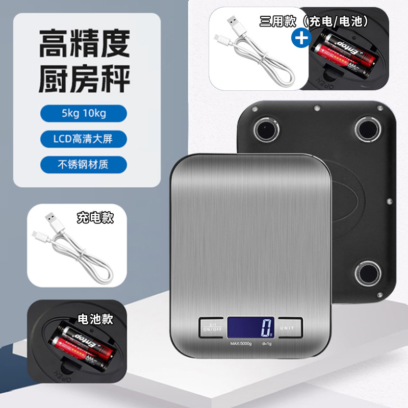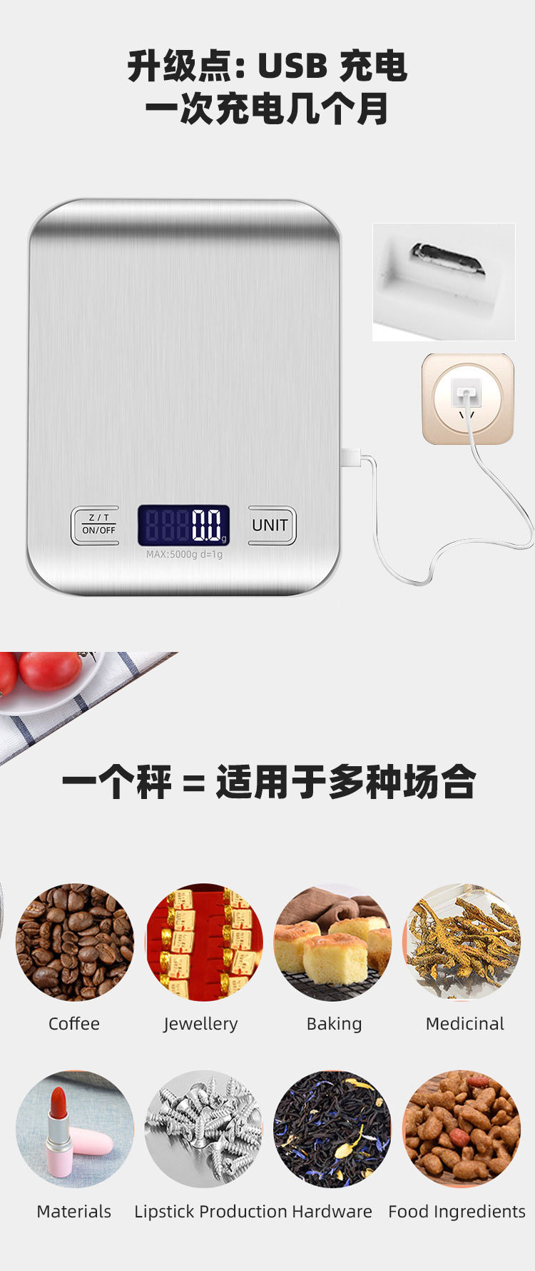 국경 간 스테인레스 스틸 전자 주방 계량 가정용 소형 전자 저울 5kg 충전식 계량 식품 베이킹 저울