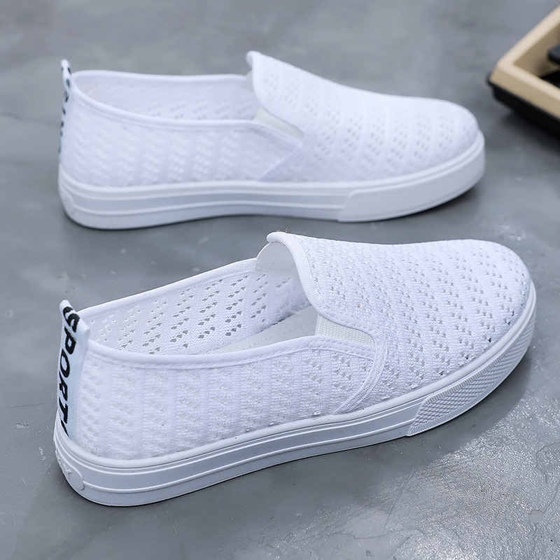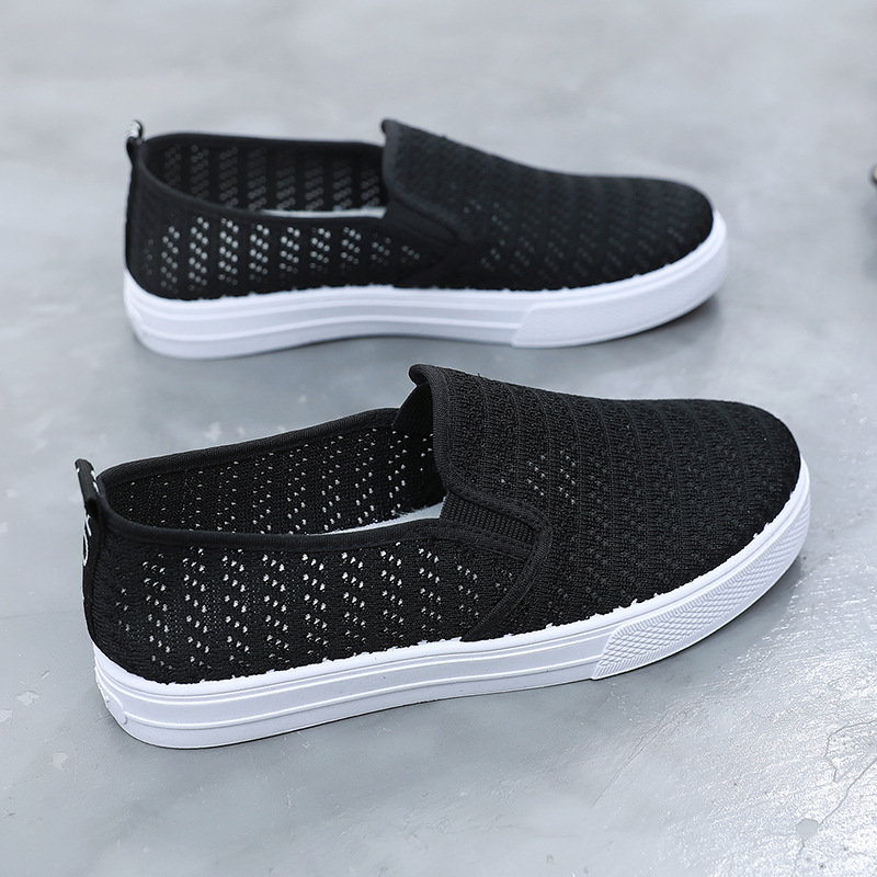 올드 베이징 천 신발 여성용 플라잉 위버 신발 메쉬 신발 통기성 슬립 온 학생 신발 플랫 소프트 솔 미끄럼 방지 게으른 신발