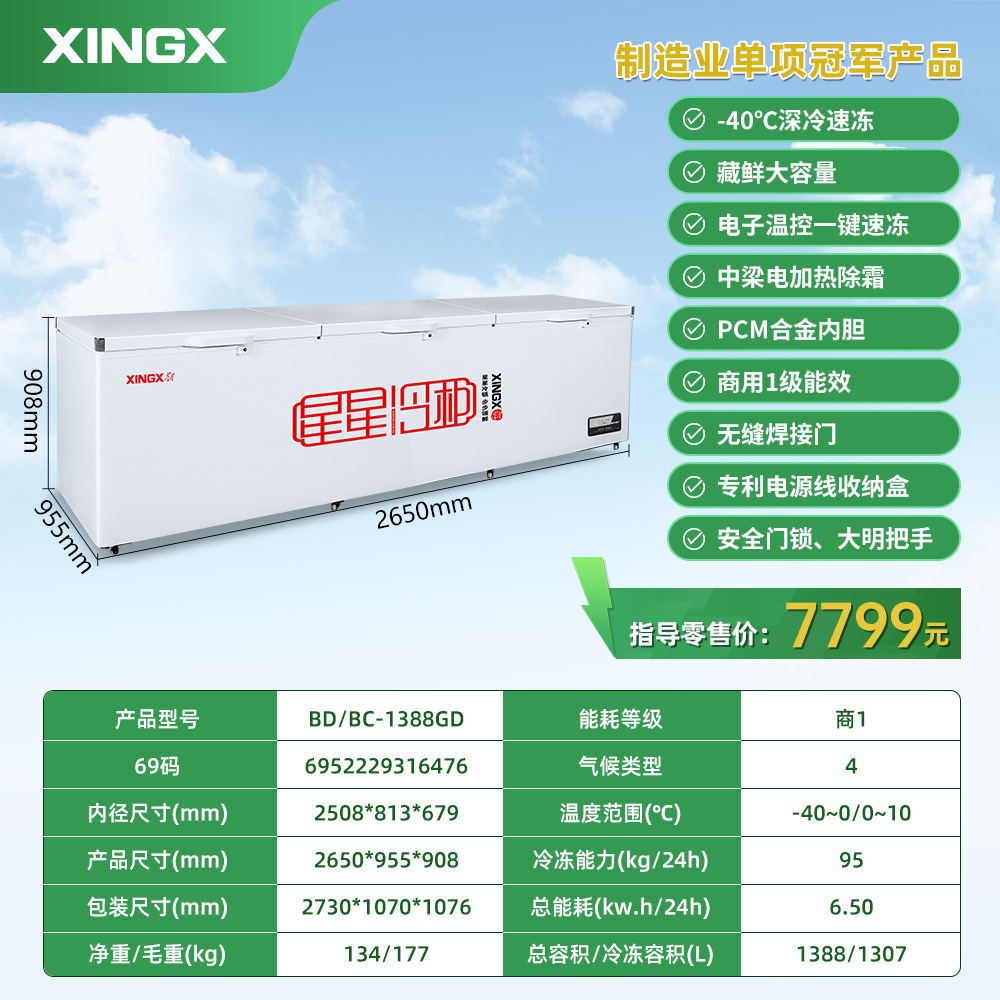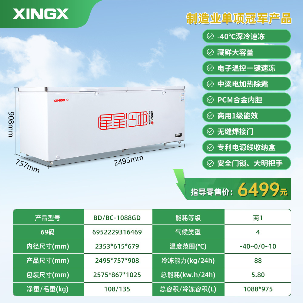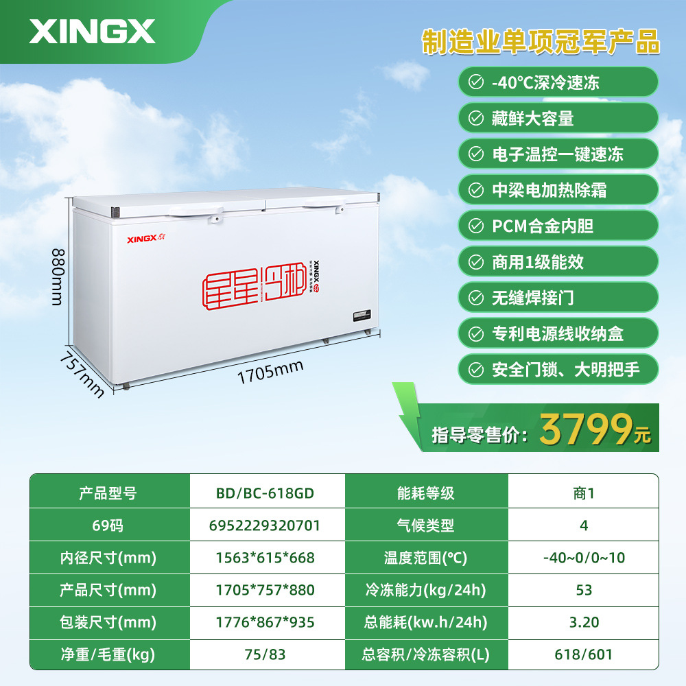 스타 518 리터 구리 튜브 냉동고 상업용 718 리터 대용량 수평 대형 냉동고 대형 냉장고 냉장고스토어 가기