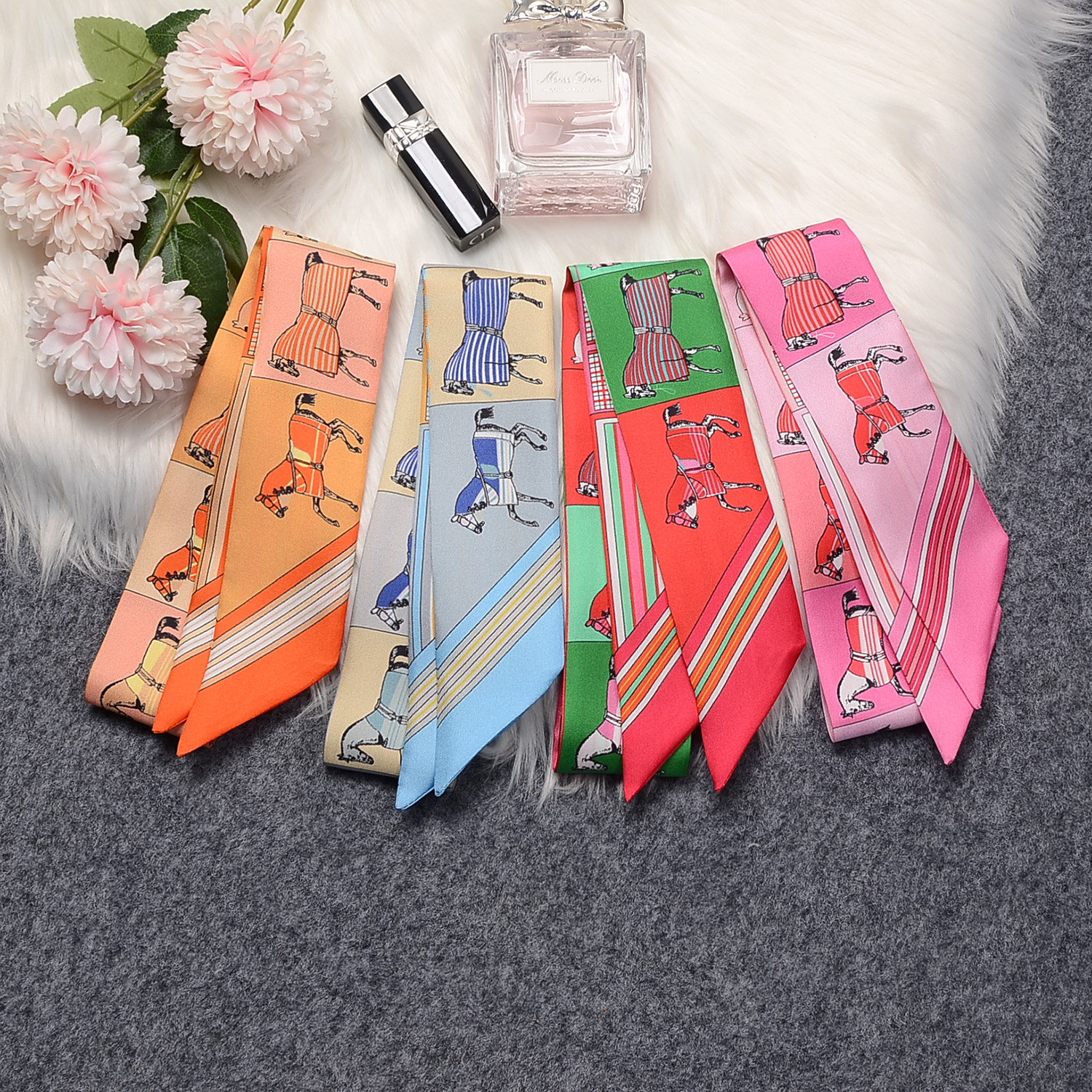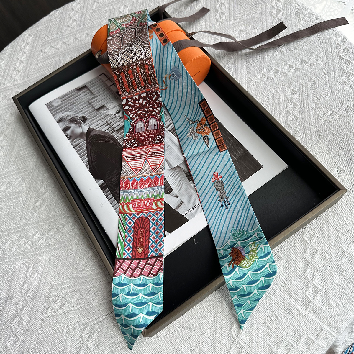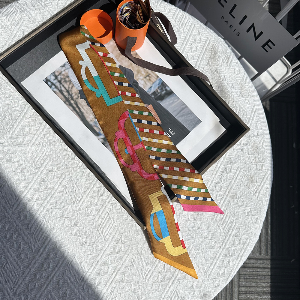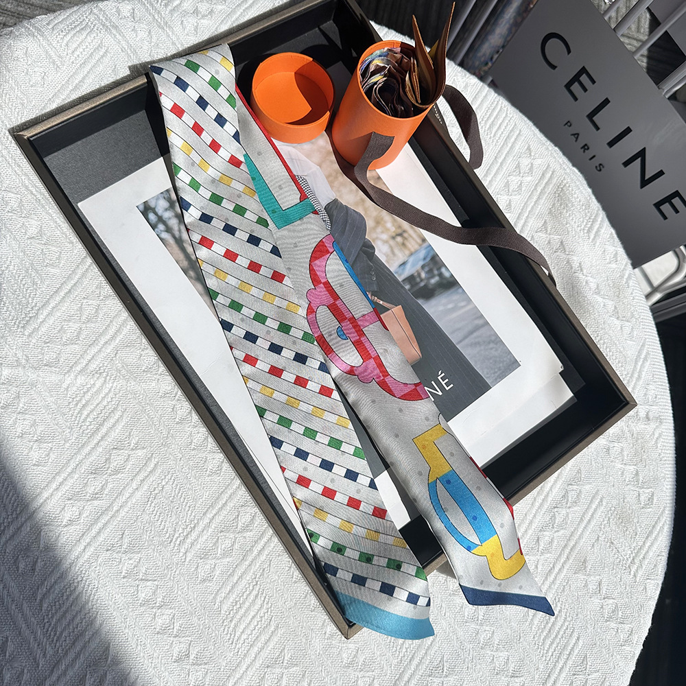 프랑스 복고풍 100% 뽕나무 실크 스카프 3 색 말 격자 무늬 여성 실크 스카프 도매 직사각형 스카프 머리띠