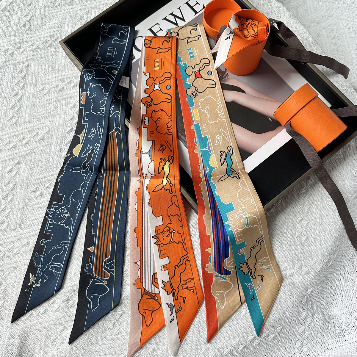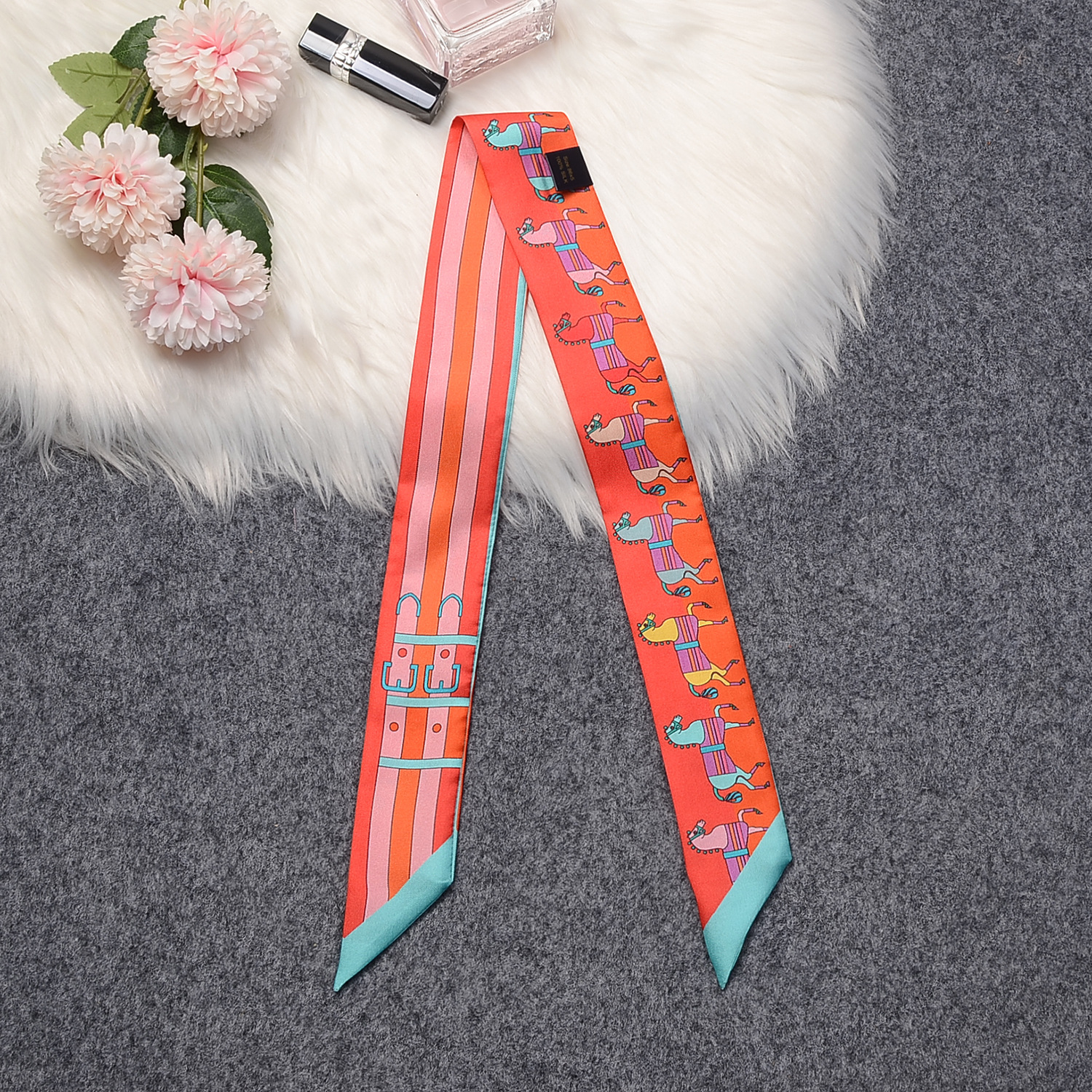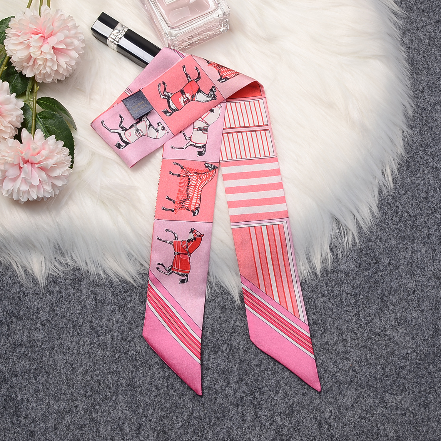 프랑스 복고풍 100% 뽕나무 실크 스카프 3 색 말 격자 무늬 여성 실크 스카프 도매 직사각형 스카프 머리띠