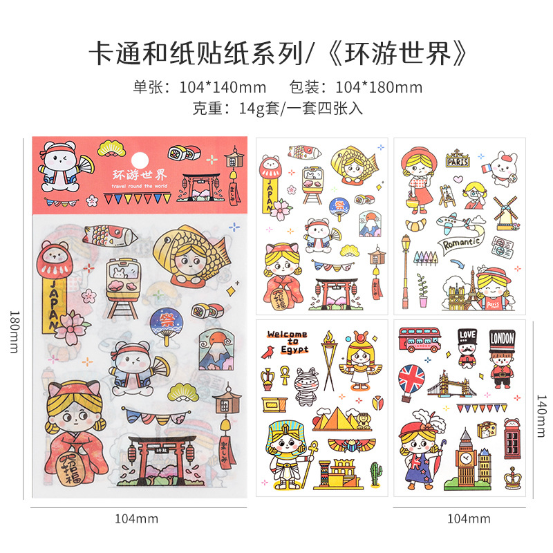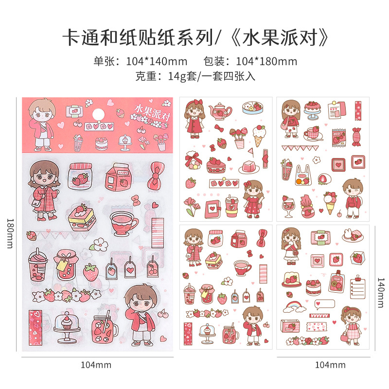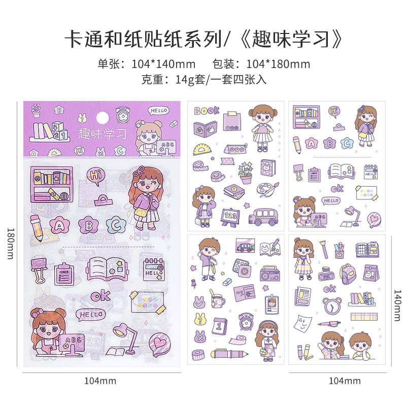 24 만화 일기 및 종이 스티커 4 조각 DIY 사진 앨범 일기 선물 스티커 학생 문구 워터 컵 스티커스토어 가기