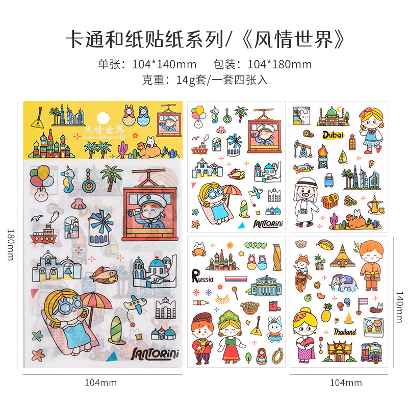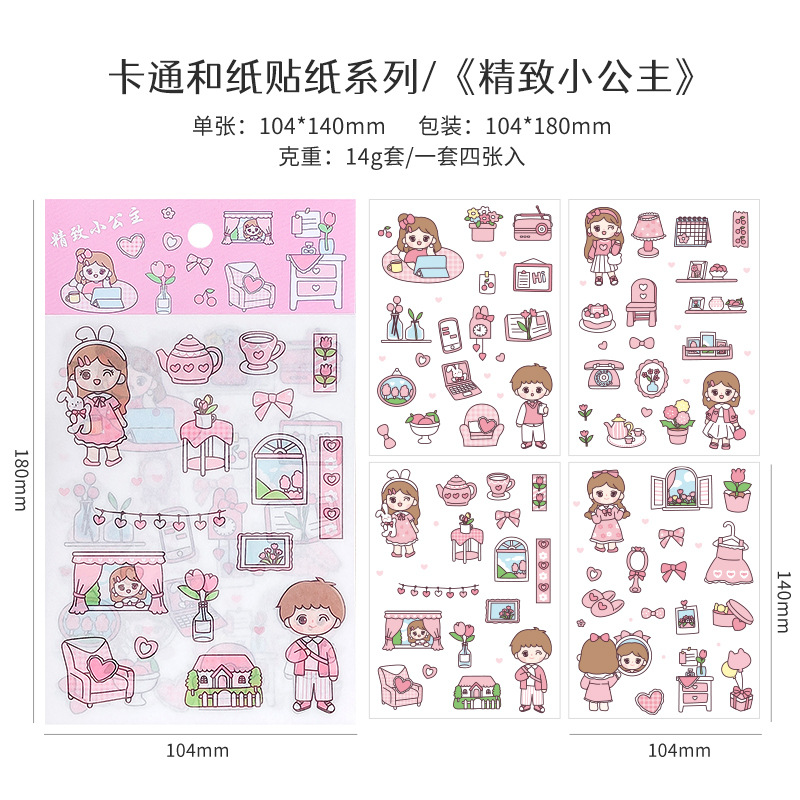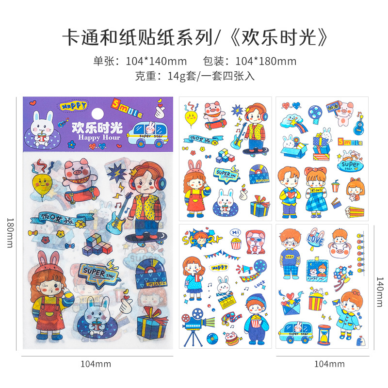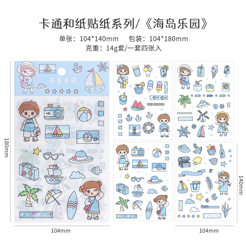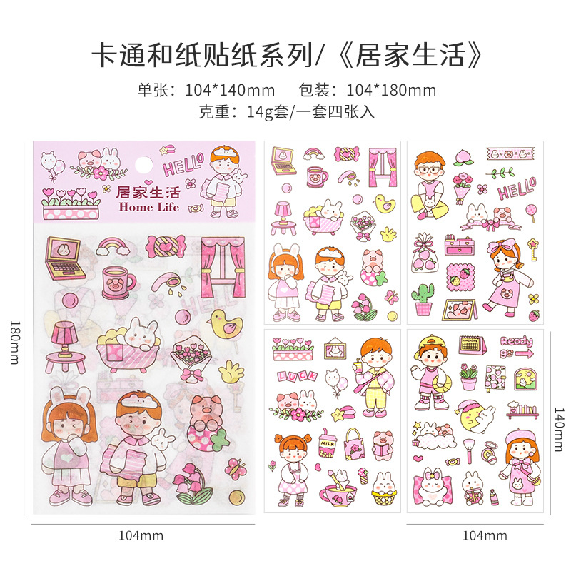24 만화 일기 및 종이 스티커 4 조각 DIY 사진 앨범 일기 선물 스티커 학생 문구 워터 컵 스티커