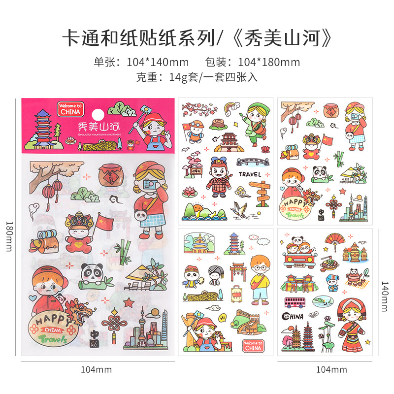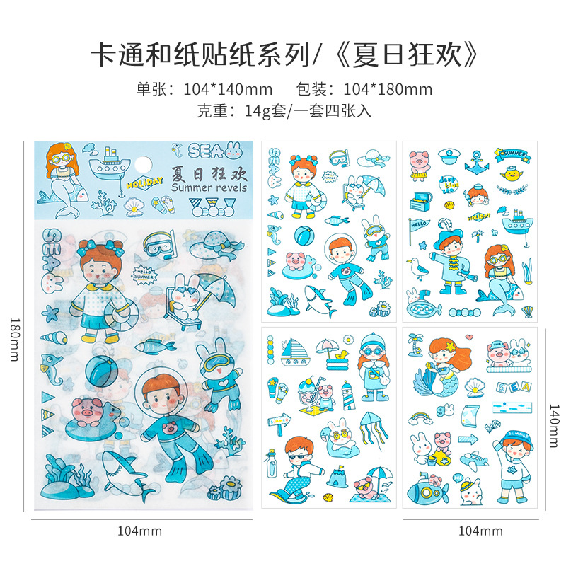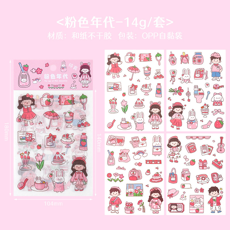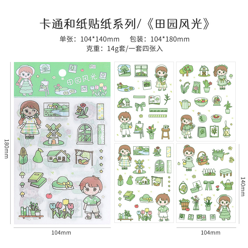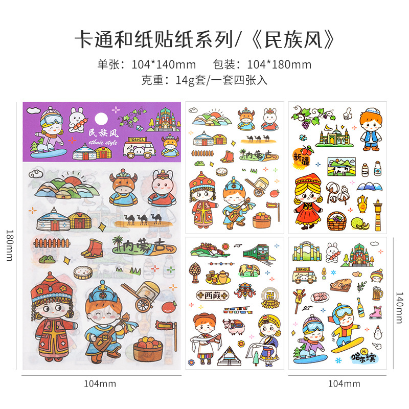 24 만화 일기 및 종이 스티커 4 조각 DIY 사진 앨범 일기 선물 스티커 학생 문구 워터 컵 스티커