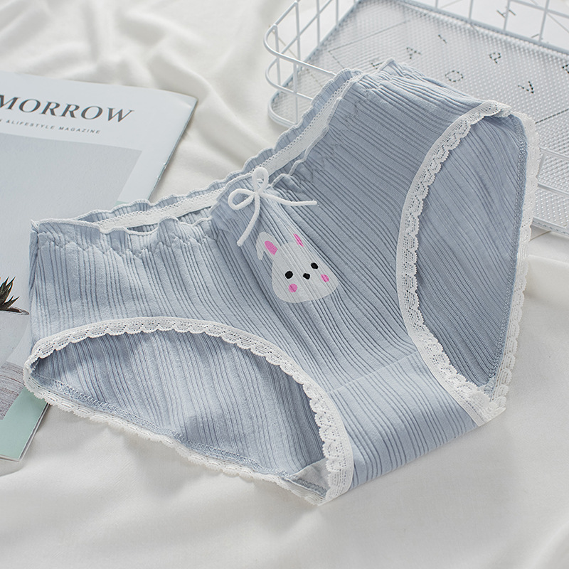 파란 토끼 여자의 속옷 인쇄 귀여운 면 속옷 여자의 중간 허리 여아 일본 스타일 플러스 사이즈 팬티스토어 가기