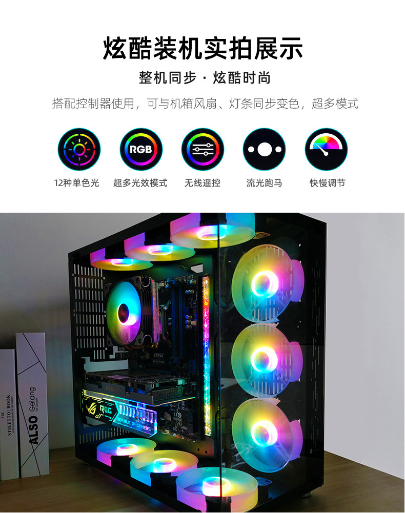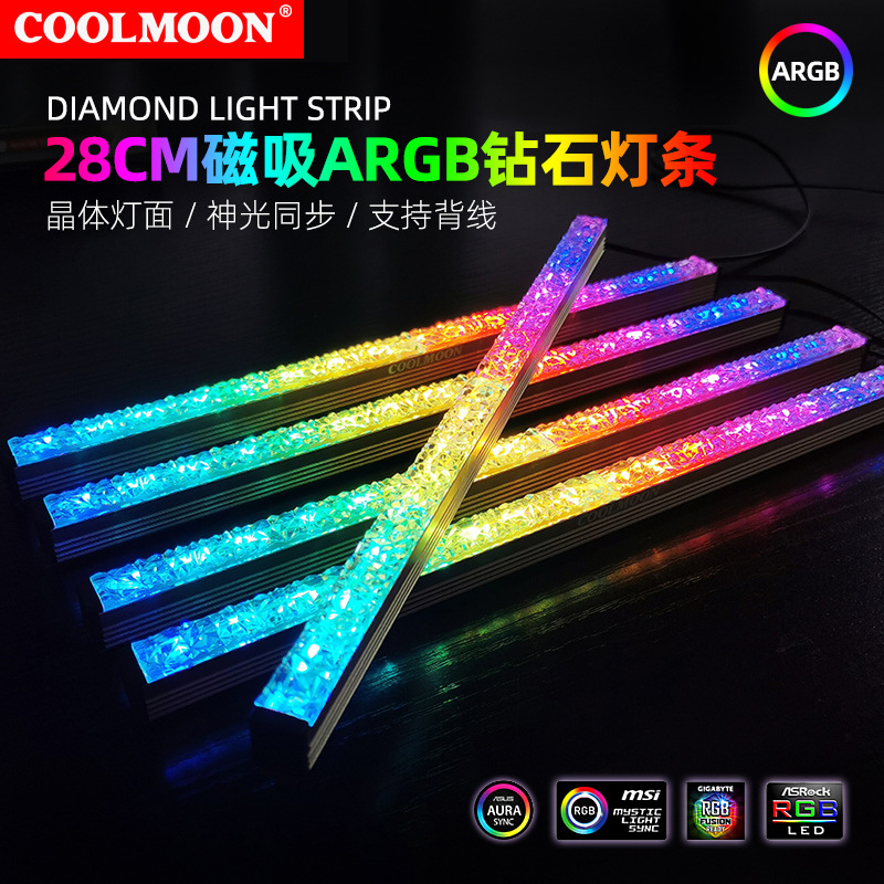 Kuyue AR28 깨진 드릴 LED 라이트 바 ARGB 컴퓨터 섀시 분위기 조명 매직 컬러 신성한 빛 동기 섀시 라이트 바