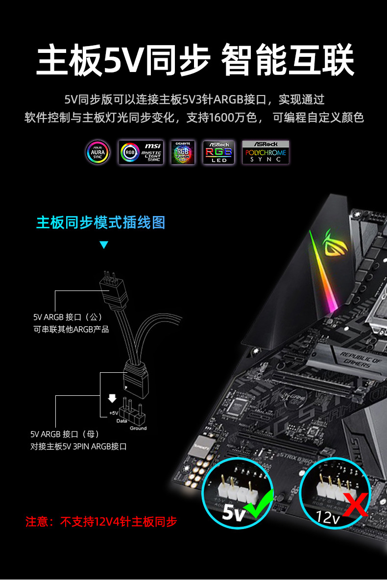 • 깨진 드릴 라이트 바 5V ARGB 멀티 인터페이스 블랙