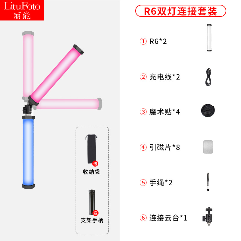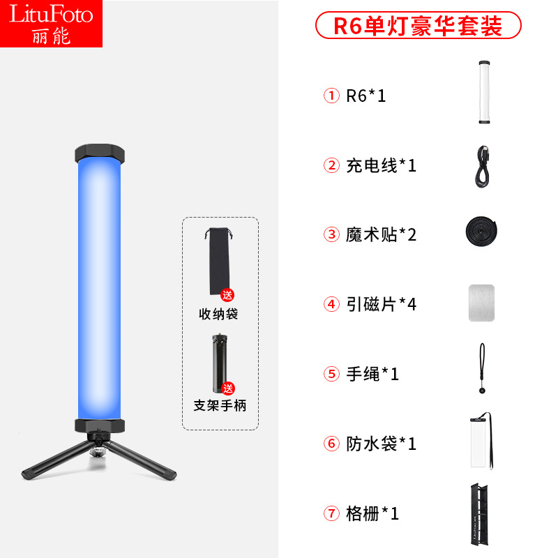• R6 (풀 컬러 RGB + 더블 컬러 온도) + 1.6 m 램프 스탠드