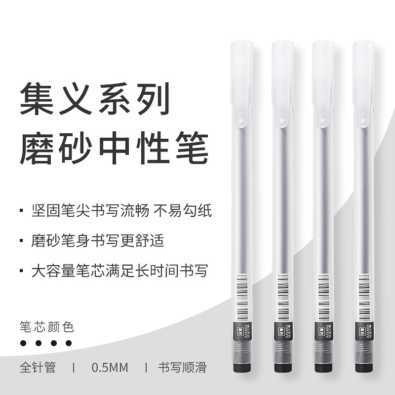 Jiyi 간단한 젖빛 젤 펜 전체 바늘 튜브 0.5mm 검은 탄소 펜 사무실 문구 학생 물 펜