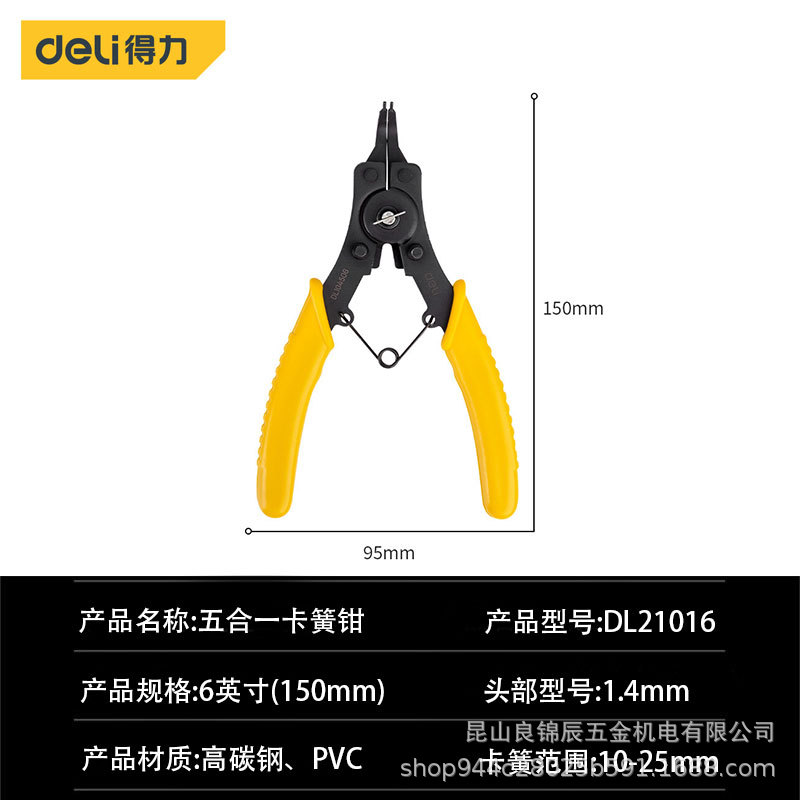 델리 공구 6 인치 5-in-one 내부 및 외부 직선 곡선 구멍 샤프트 고정 링 스냅 링 스냅 링 클램프 세트 DL104506스토어 가기