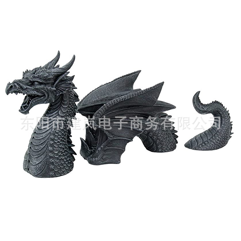 수지 공예 검은 만화 동물 장식품 3 섹션 드래곤 동상 정원 장식 공예 장식품스토어 가기