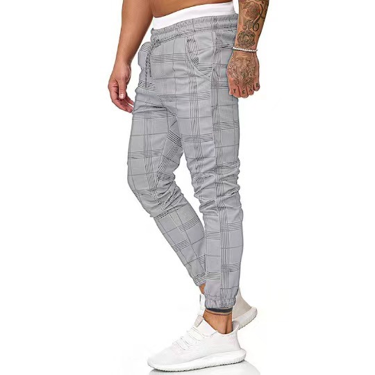 대외 무역 크로스 보더 남성 격자 무늬 바지 캐주얼 패션 테더 탄성 허리 바지 중간 허리 작은 발 레이스 업 캐주얼 바지스토어 가기