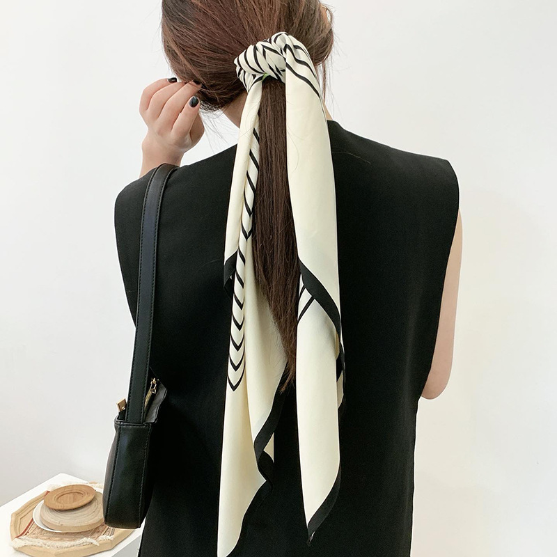 트윌 코튼 90 라지 스퀘어 스카프 한국 스타일 흑백 스트라이프 패션 클래식 스퀘어 스카프 숙녀 패션 스카프 헤어 액세서리 실크 스카프스토어 가기