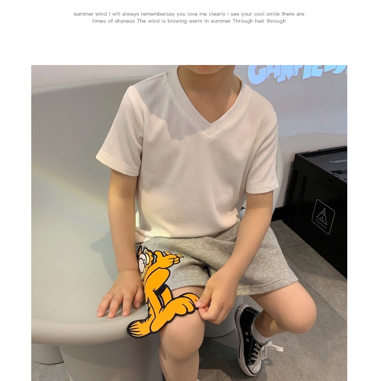 남아 티셔츠 어린이 반팔 여름 스트레치 V-넥 베이스 셔츠 아기의 여름 단색 티셔츠 스포츠 탑 캐주얼