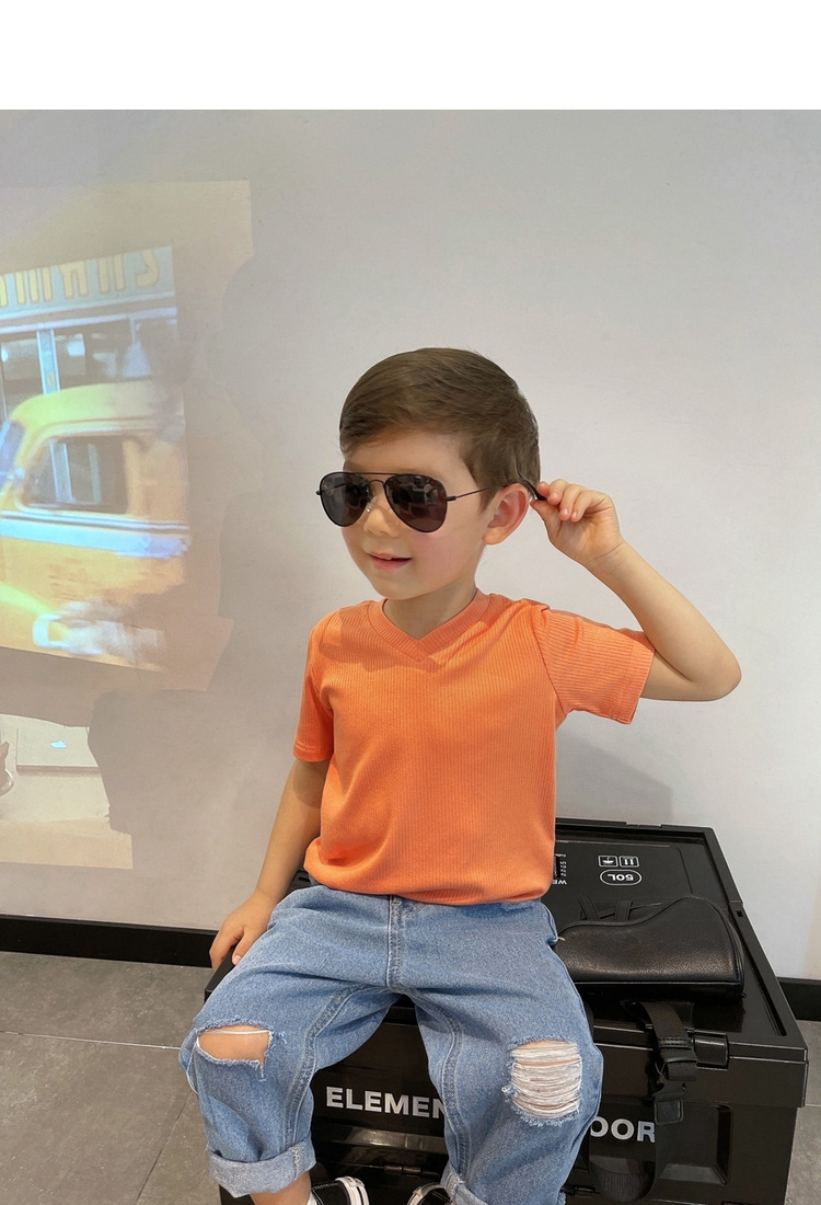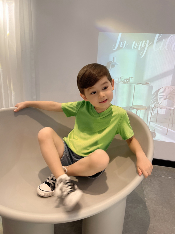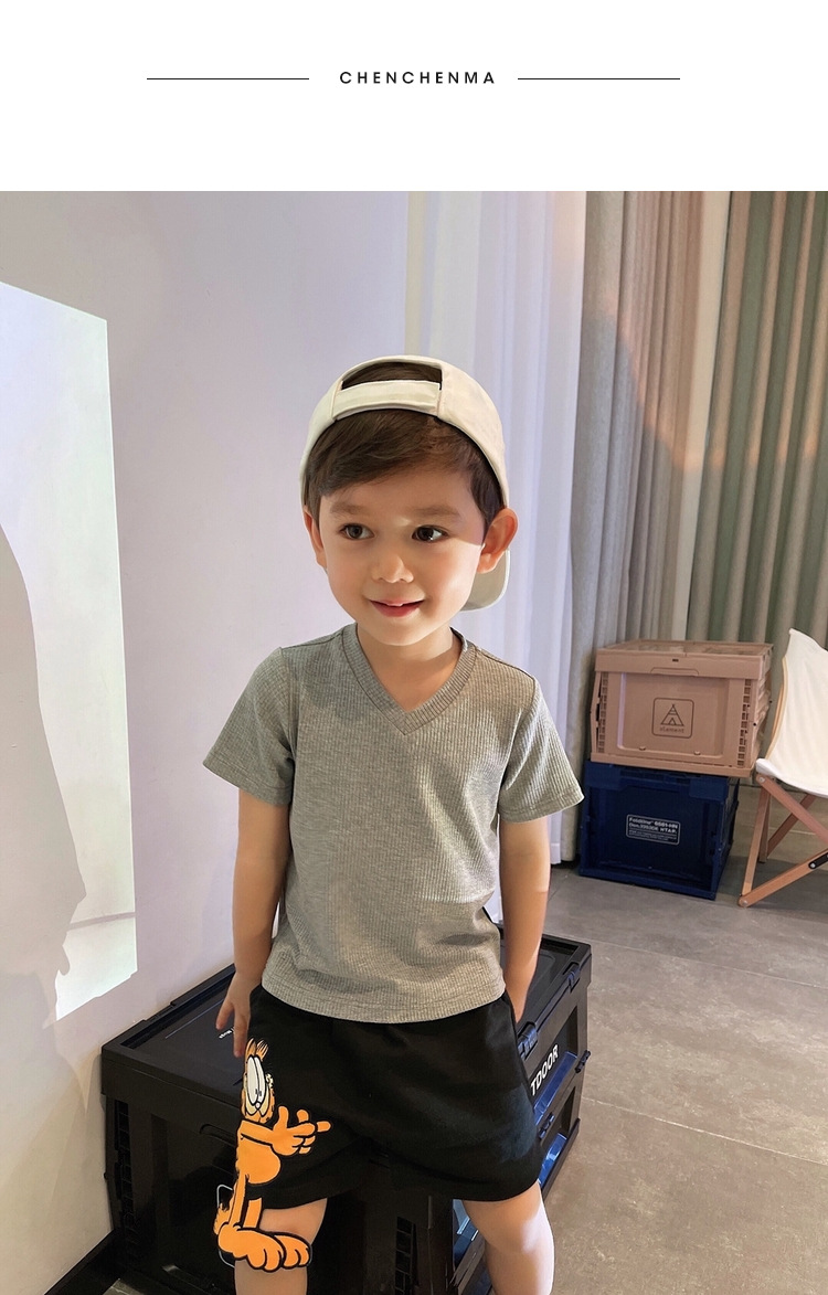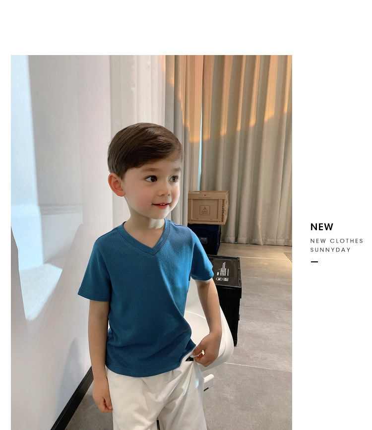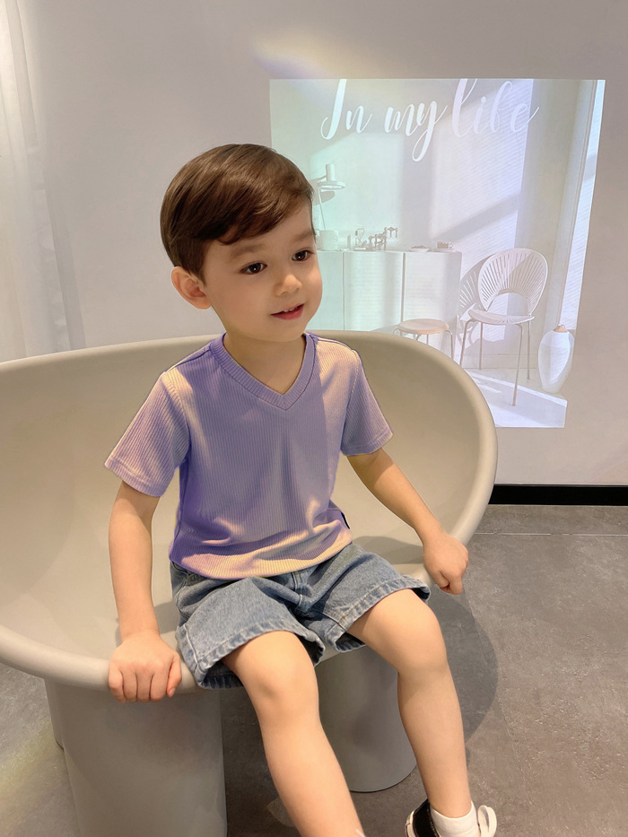 남아 티셔츠 어린이 반팔 여름 스트레치 V-넥 베이스 셔츠 아기의 여름 단색 티셔츠 스포츠 탑 캐주얼스토어 가기