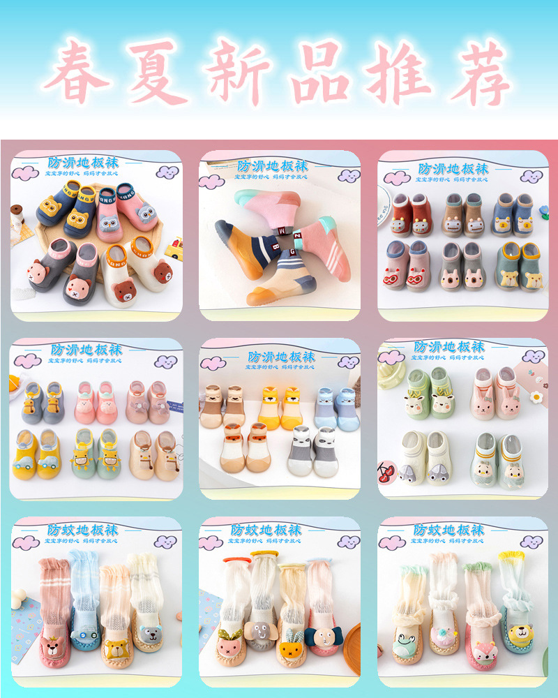 새로운 어린이 바닥 양말 아기 유아 신발 여름 모기 방지 양말 아기 귀여운 양말 미끄럼 방지 아기 바닥 신발스토어 가기