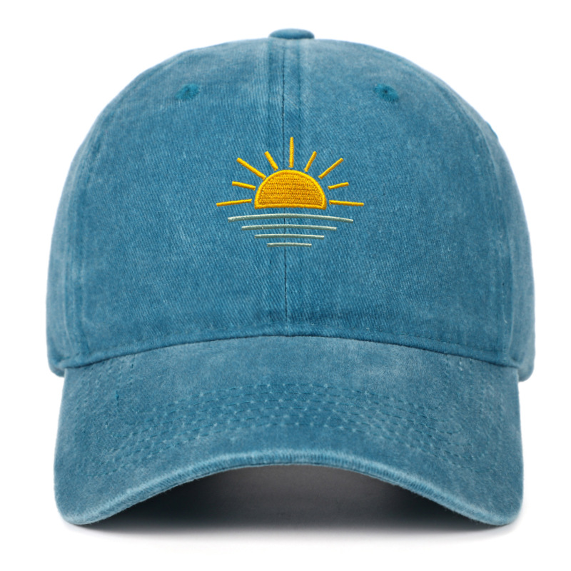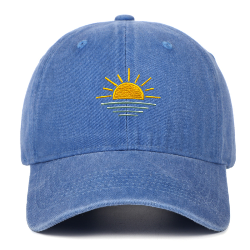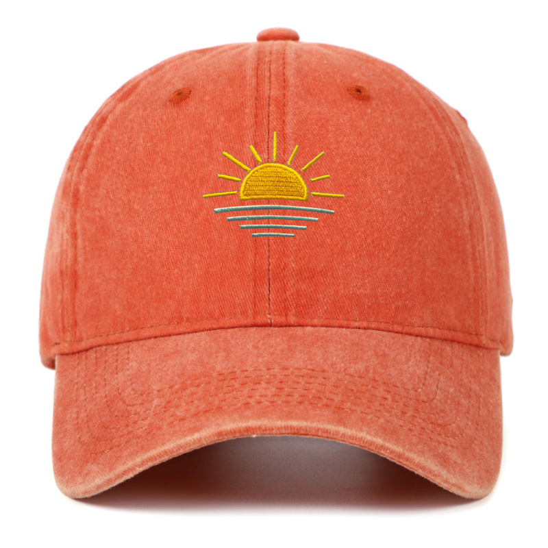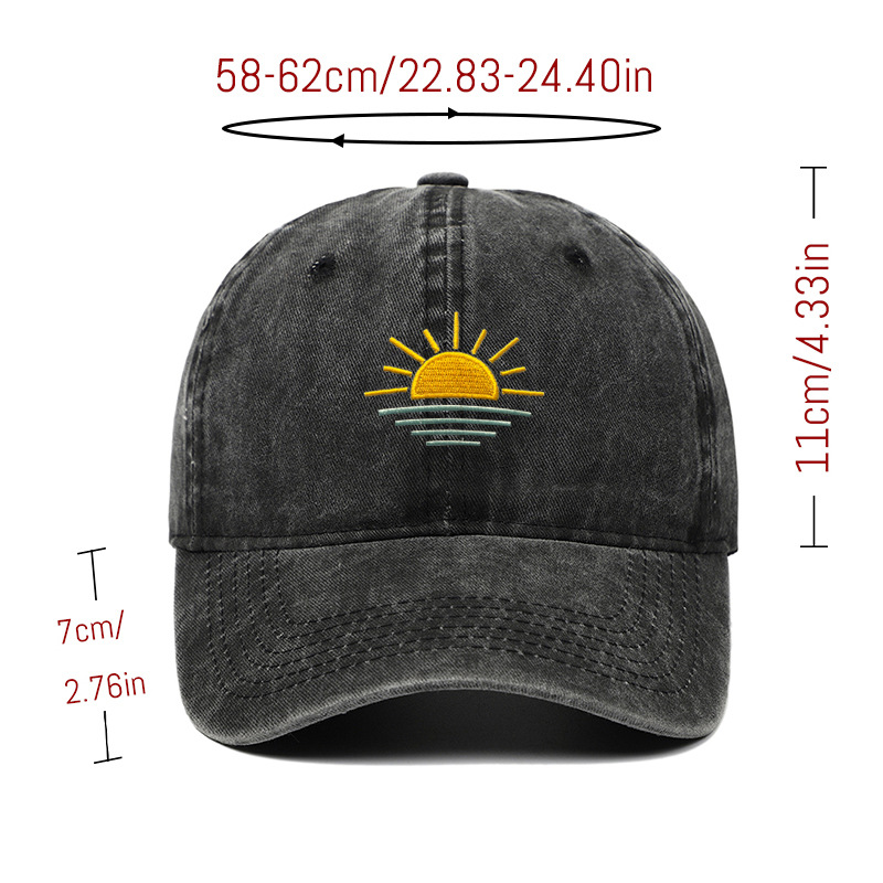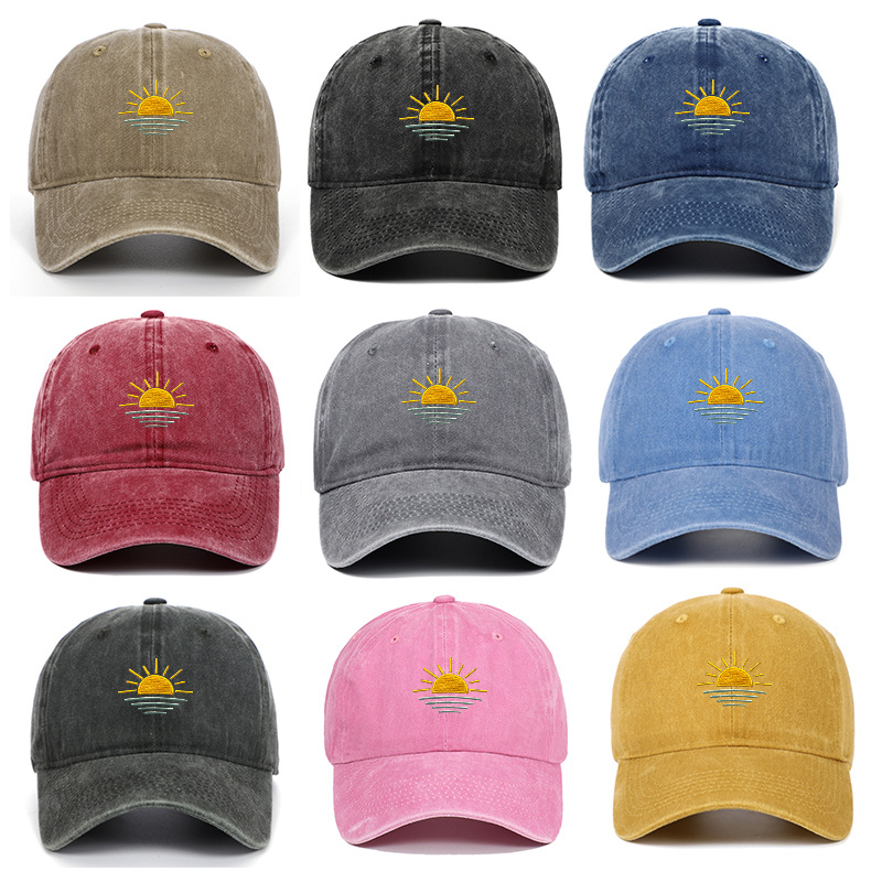 새로운 해변 일출 자수 워싱 빈티지 야구 모자 남녀공용 여름 야외 등산 스포츠 통기성 차양 모자