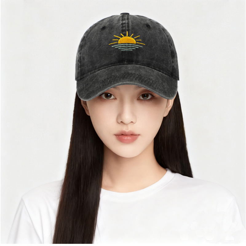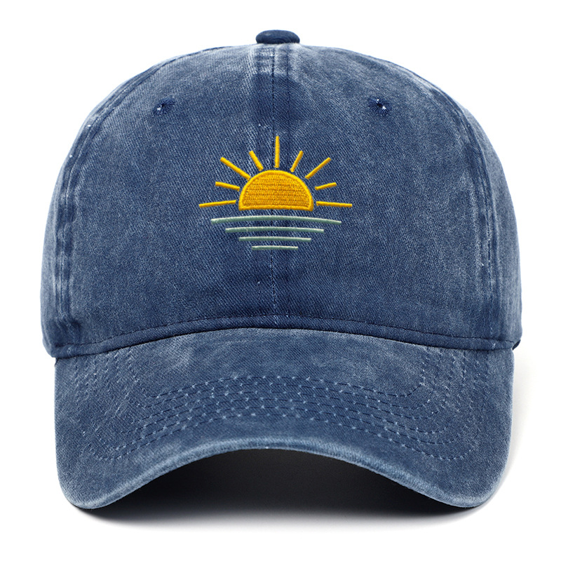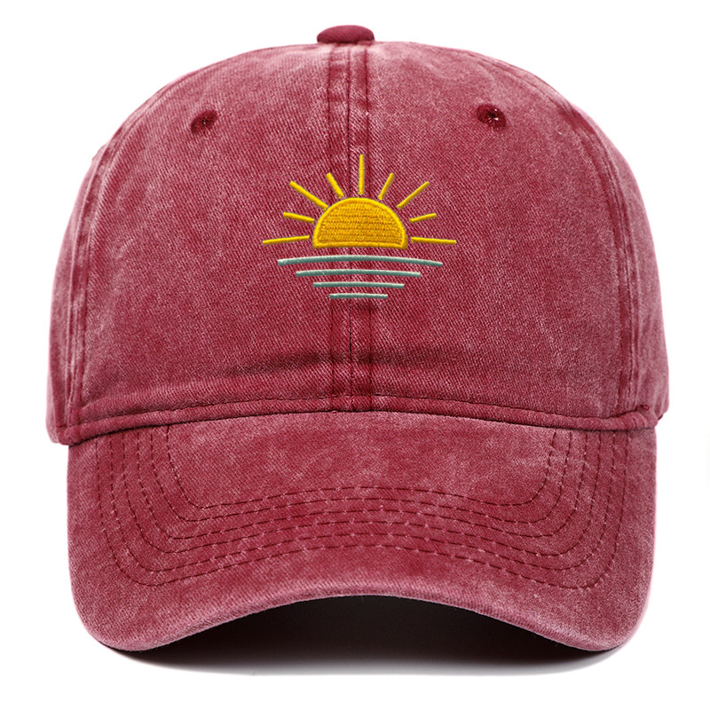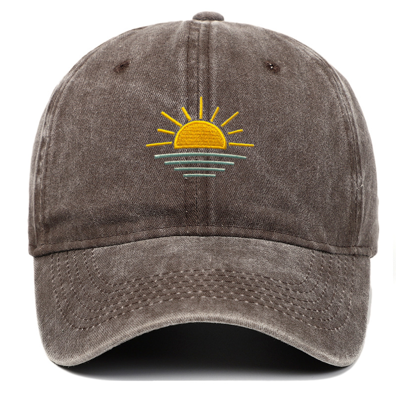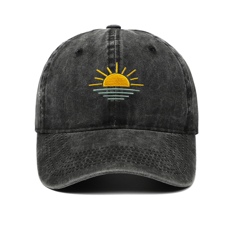 새로운 해변 일출 자수 워싱 빈티지 야구 모자 남녀공용 여름 야외 등산 스포츠 통기성 차양 모자