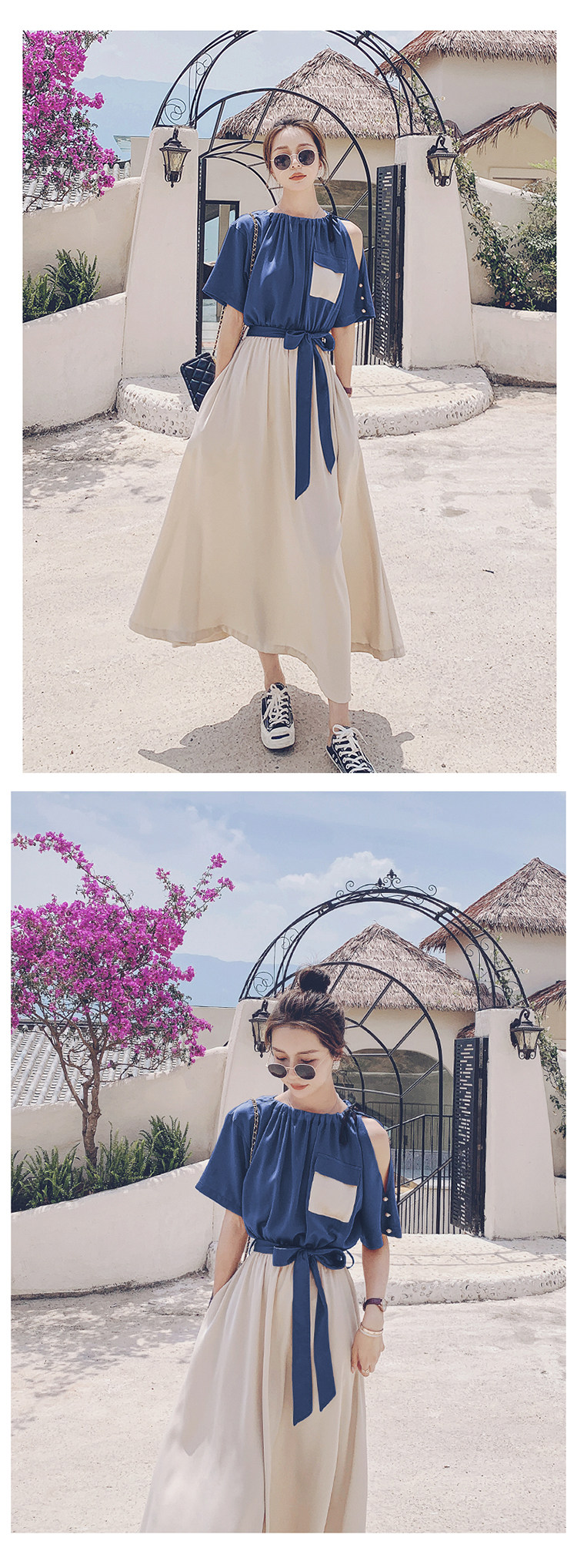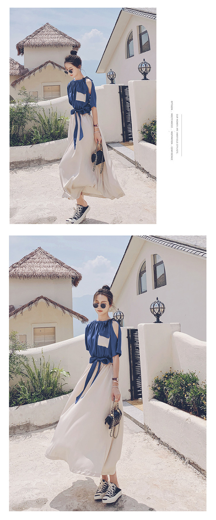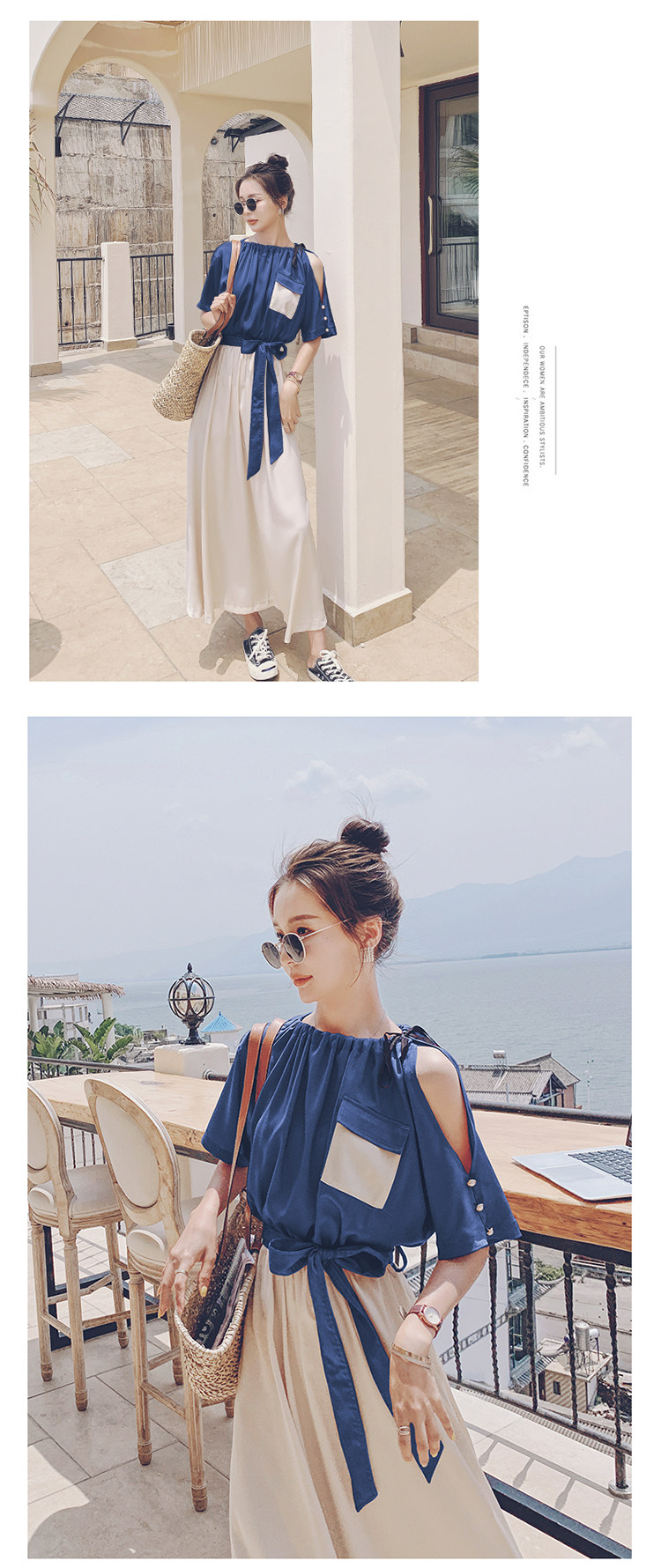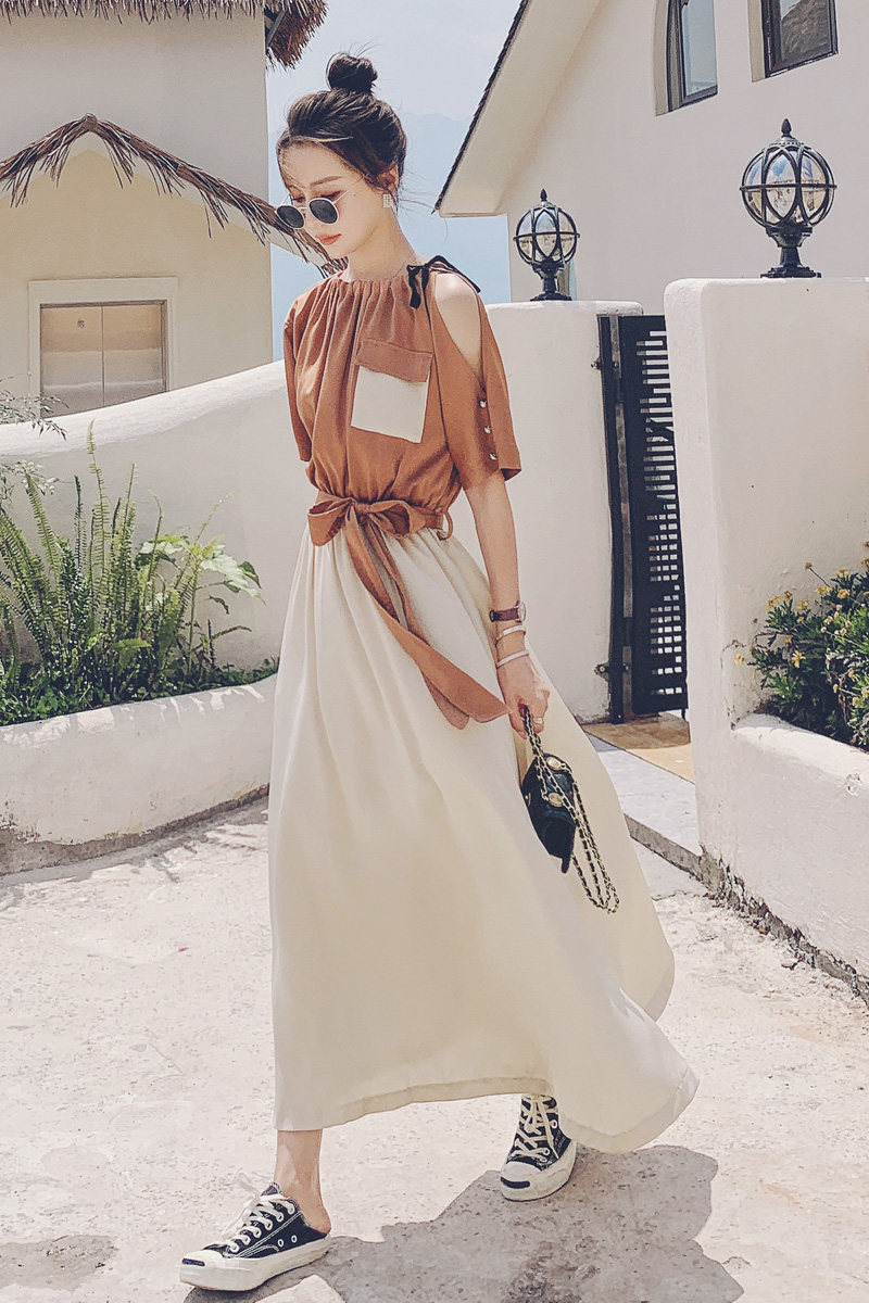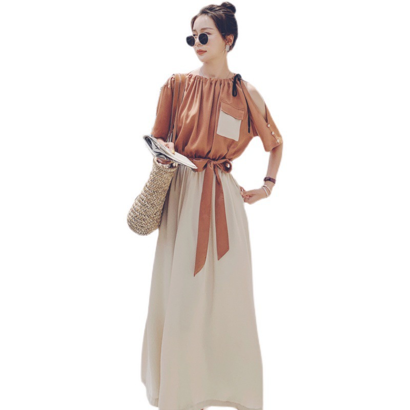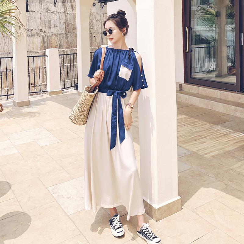 여름 새 원피스 2024 한국 스타일 허리 슬리밍 왕실 자매 빛 성숙한 스타일 슈퍼 요정 프랑스 스티칭 긴 원피스 여성스토어 가기