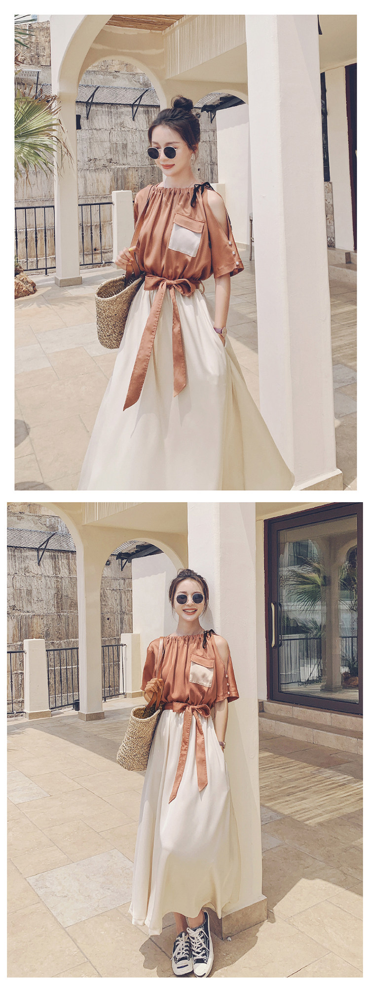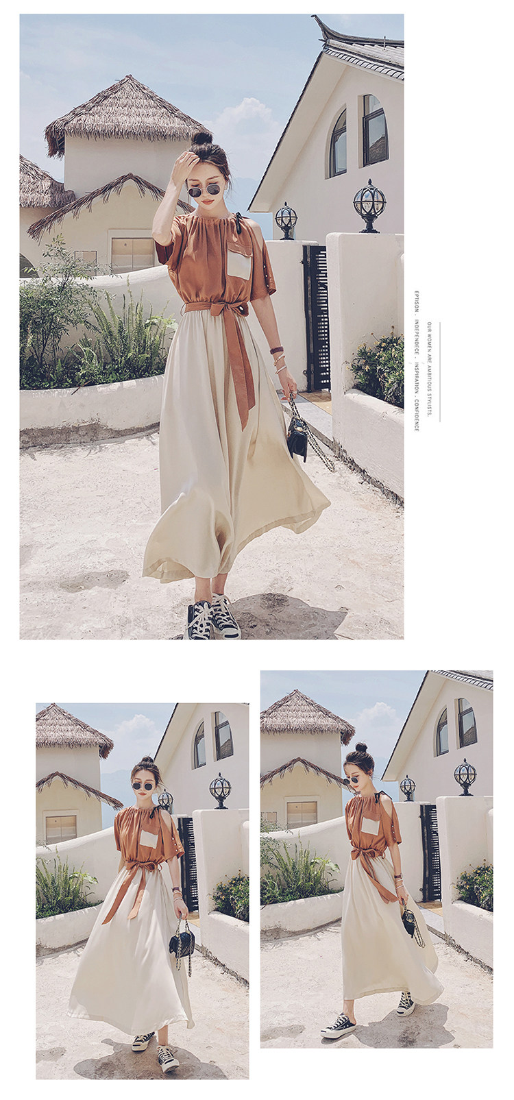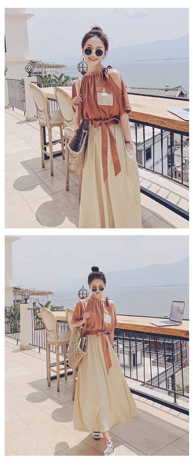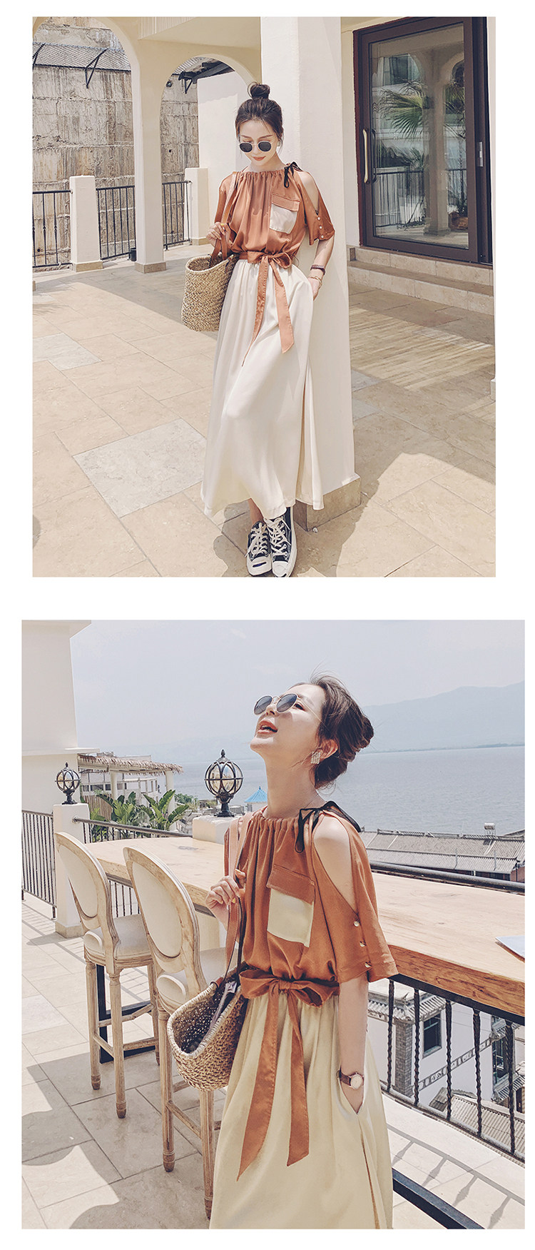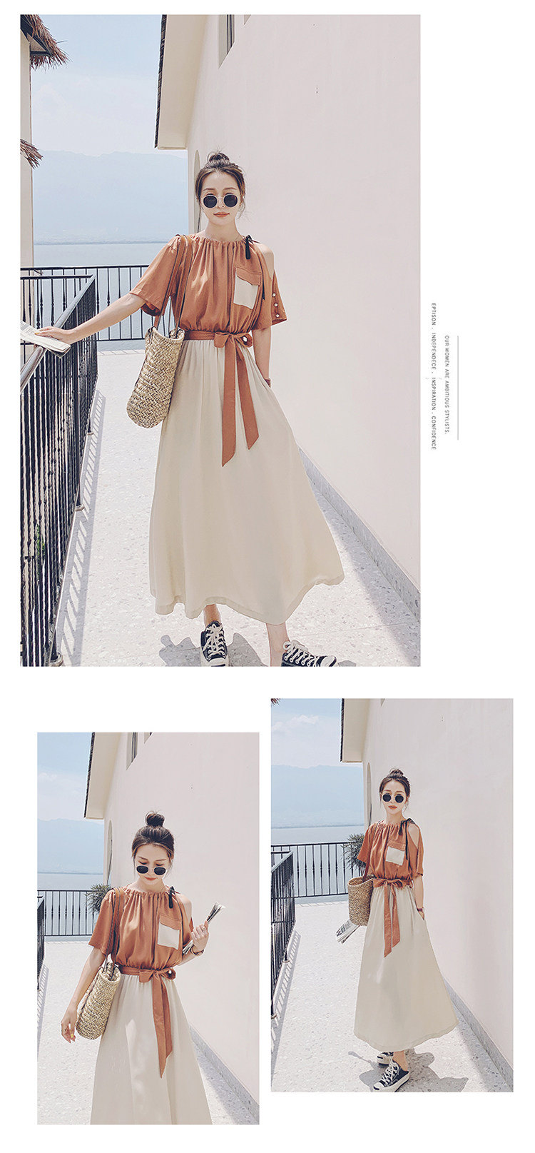 여름 새 원피스 2024 한국 스타일 허리 슬리밍 왕실 자매 빛 성숙한 스타일 슈퍼 요정 프랑스 스티칭 긴 원피스 여성스토어 가기