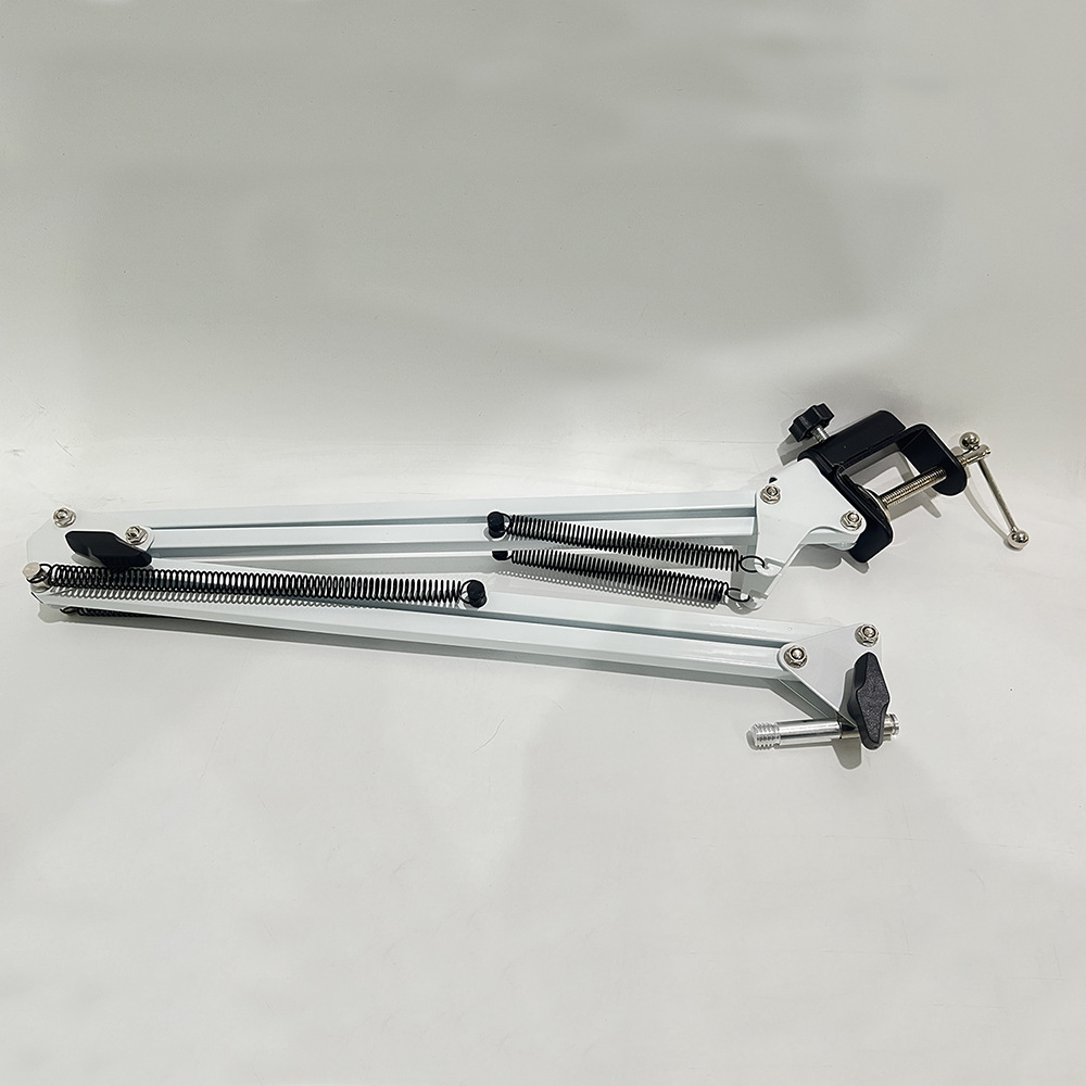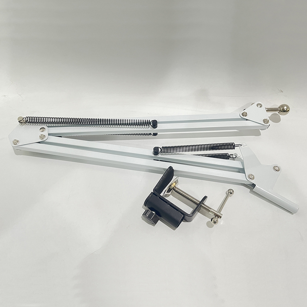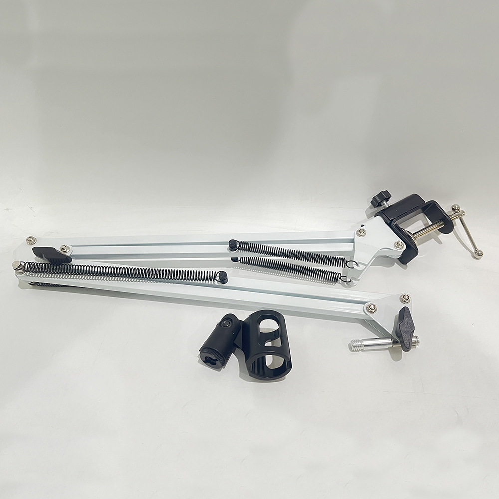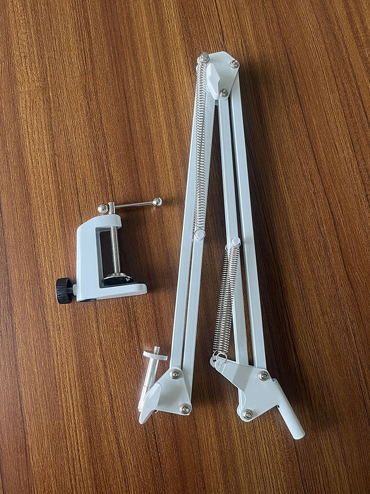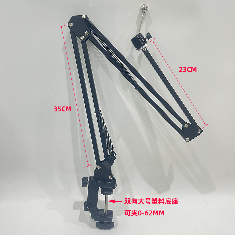 产品介绍:桌面悬臂式麦克风支架,适用于当今流行的各种类型的电容或动圈式麦克风。外观美观大方,安装灵活方便,拥有移动范围大,方向定位准、承重能力强、收藏携带易等优点。