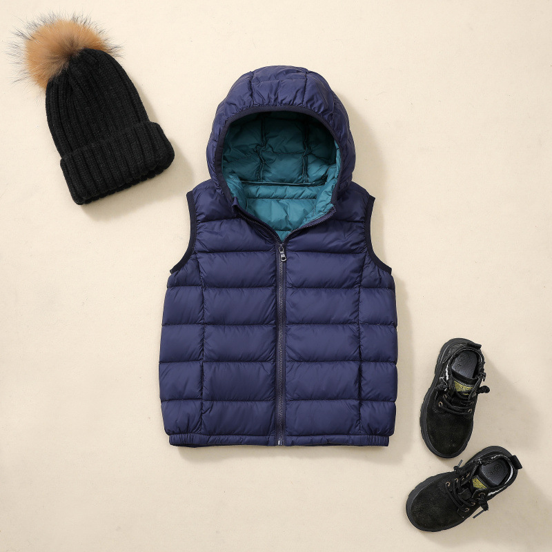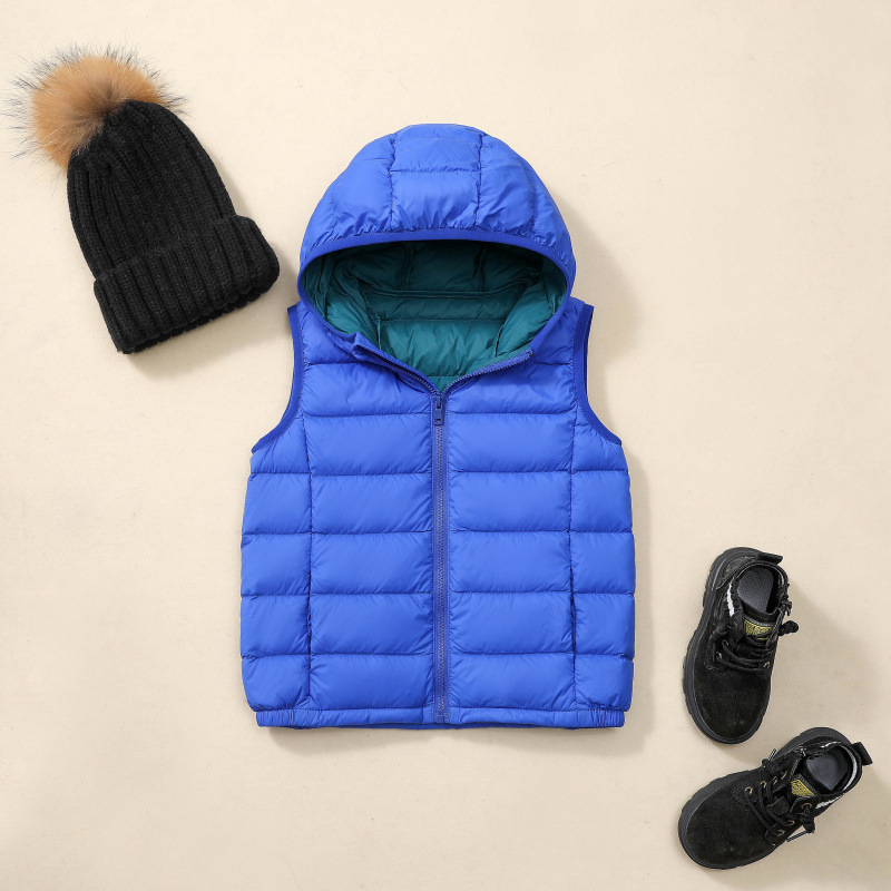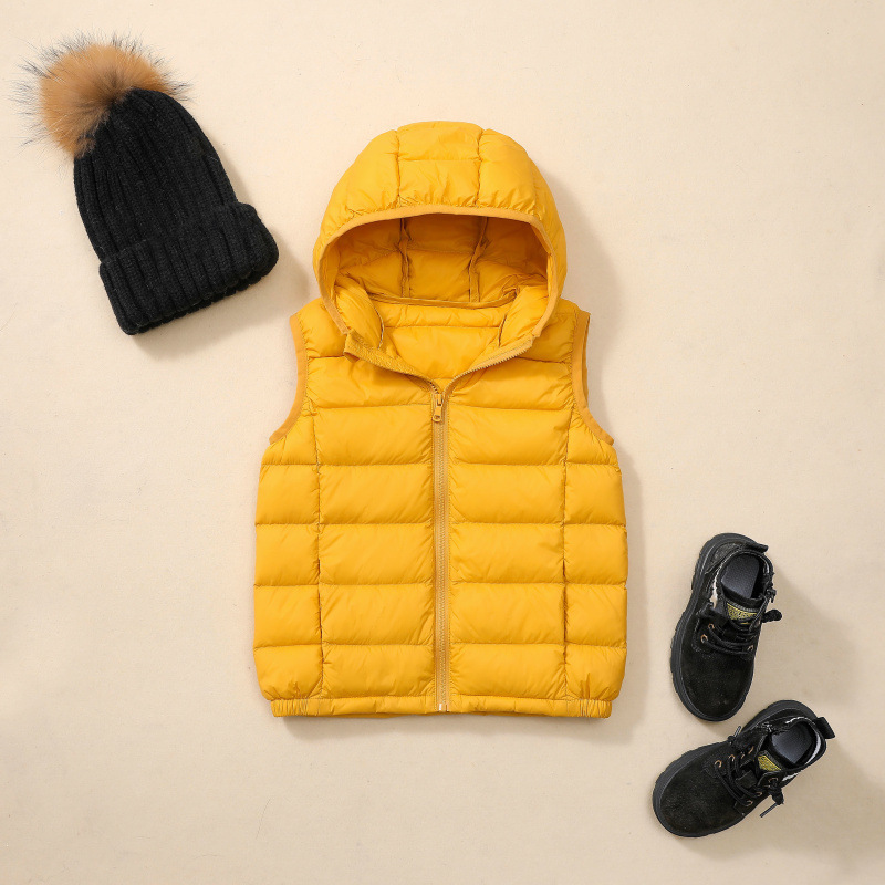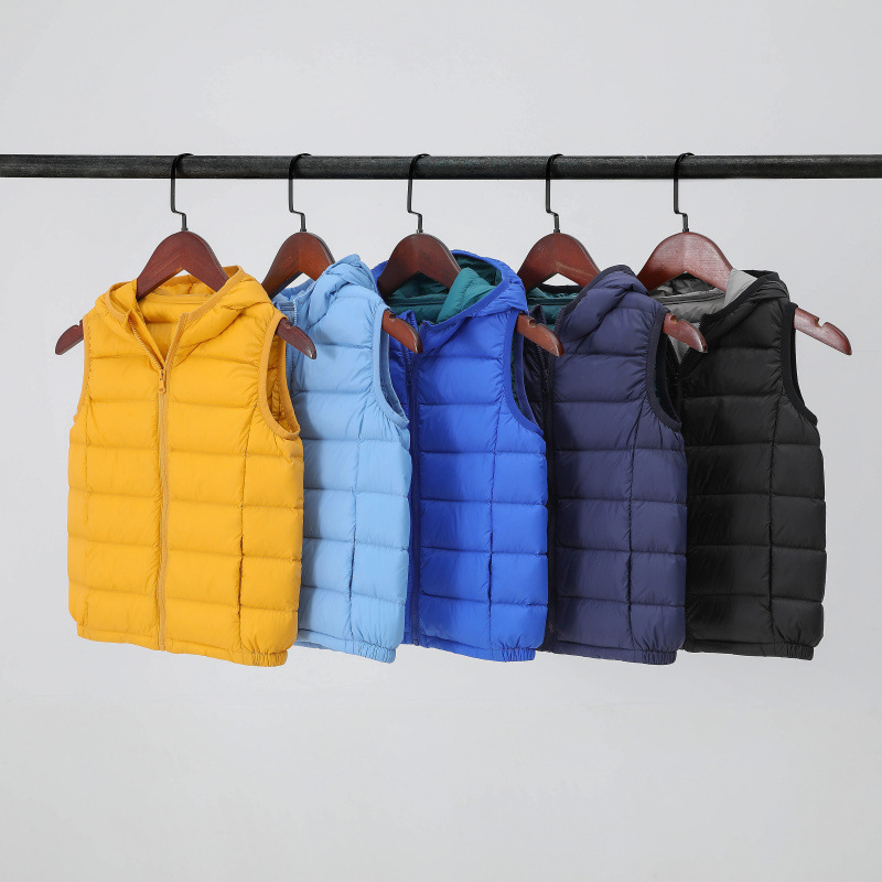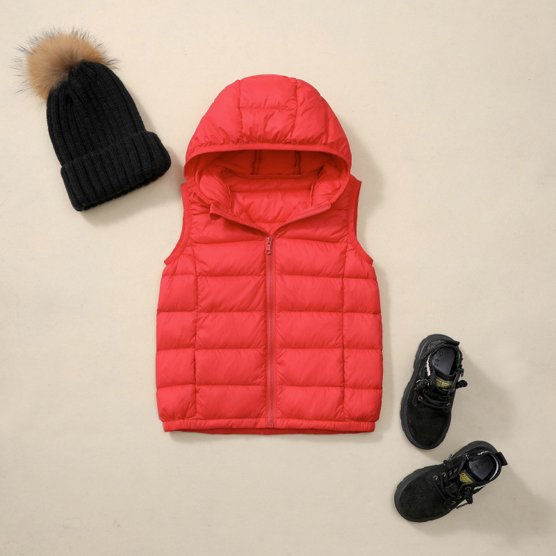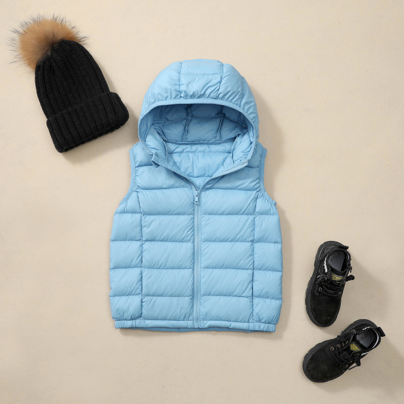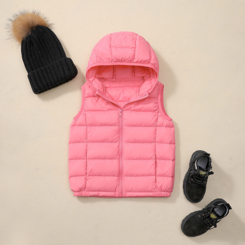 가을과 겨울 라이트 다운 조끼 재킷 남아 여아 아동 베이비 후드 다운 조끼 중형 및 대형 아동복
