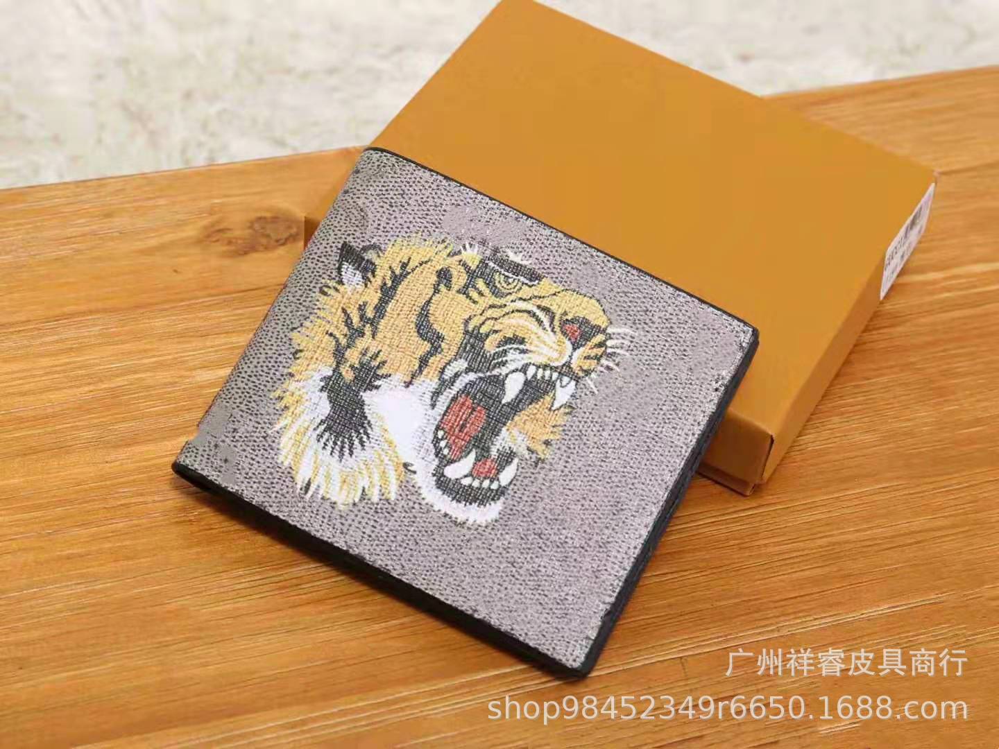 크로스 보더 지갑 소스 유럽과 미국 스타일 실크 스크린 동물 지갑 수평 사각 재고 남성 캐주얼 PU 접이식 지갑스토어 가기