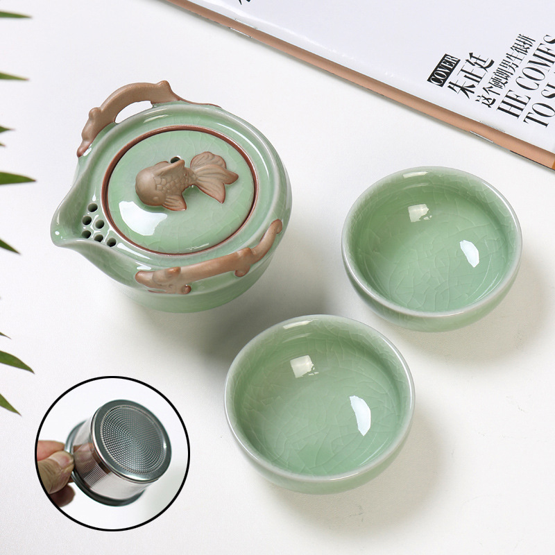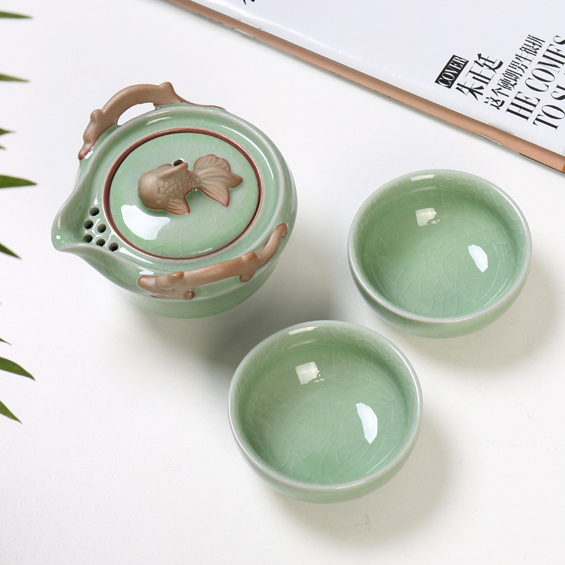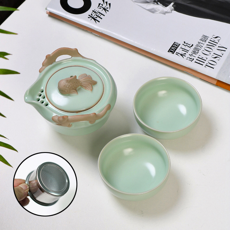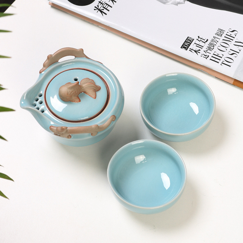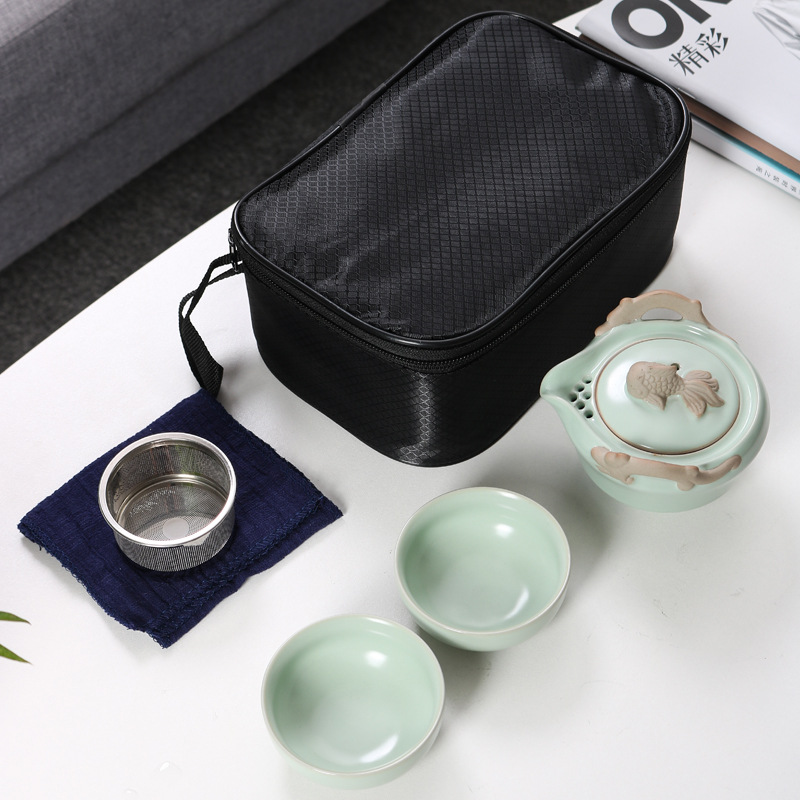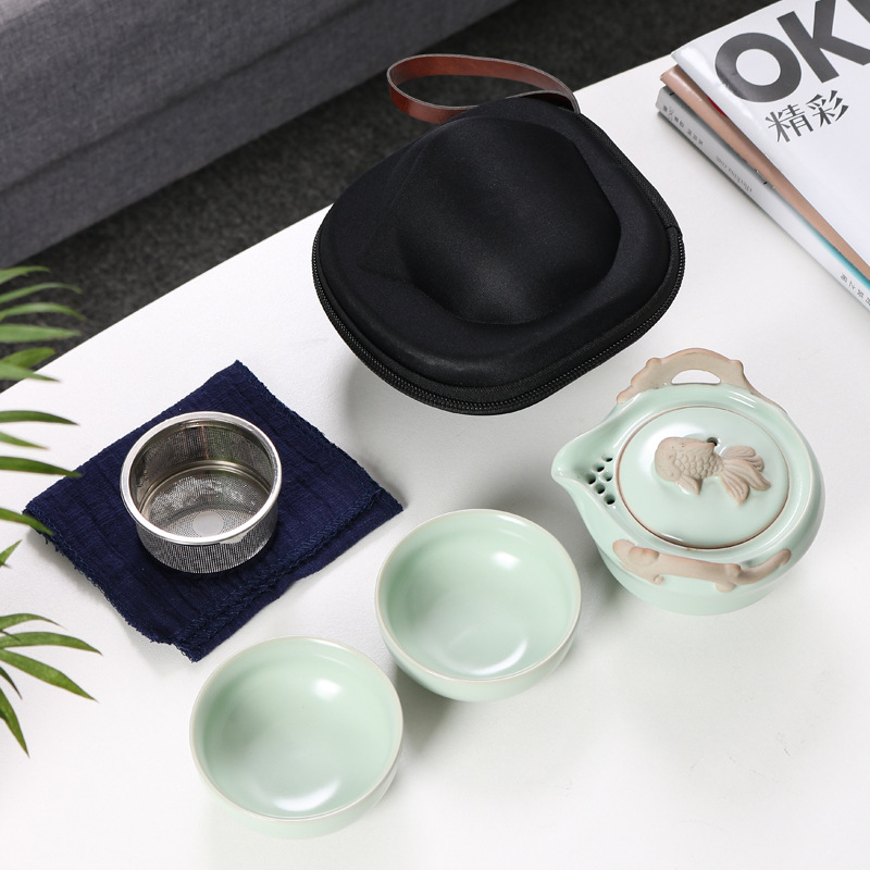 휴대용 익스프레스 컵 한 냄비 두 컵 루 가마 간단한 쿵푸 찻주전자 찻잔 야외 가방 여행 차 세트 작은 세트스토어 가기