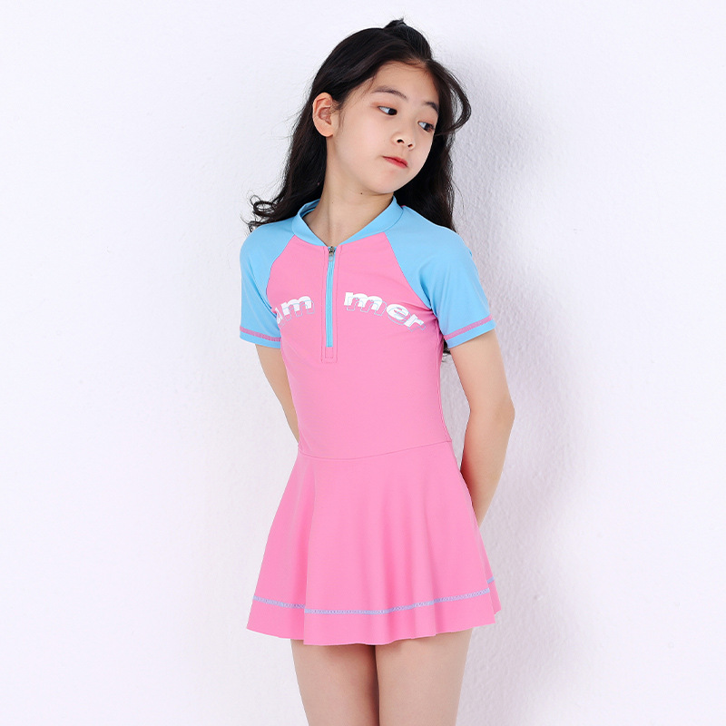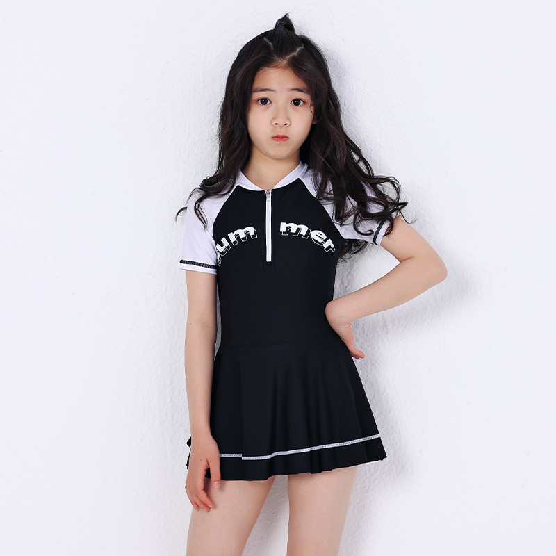 진홍 브랜드 2021 새로운 여아 원피스 스커트 수영복 큰 아이들을위한 귀여운 어린이 수영복