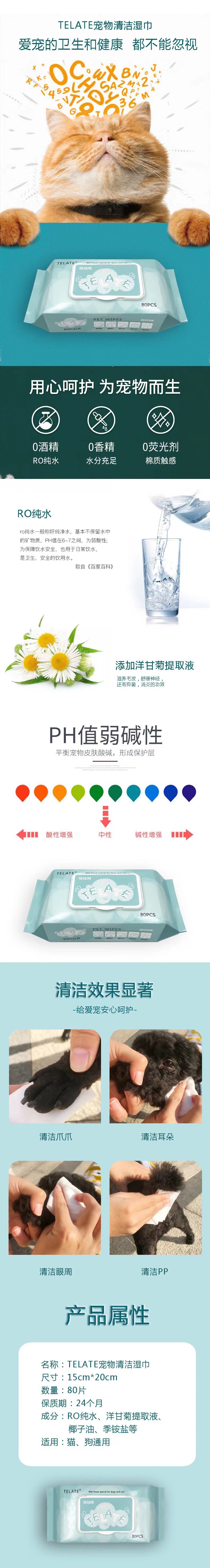 텔레이트 애완 동물 물티슈 개 고양이 실버 이온 물티슈 티마크 물티슈 80 애완 동물 청소 용품