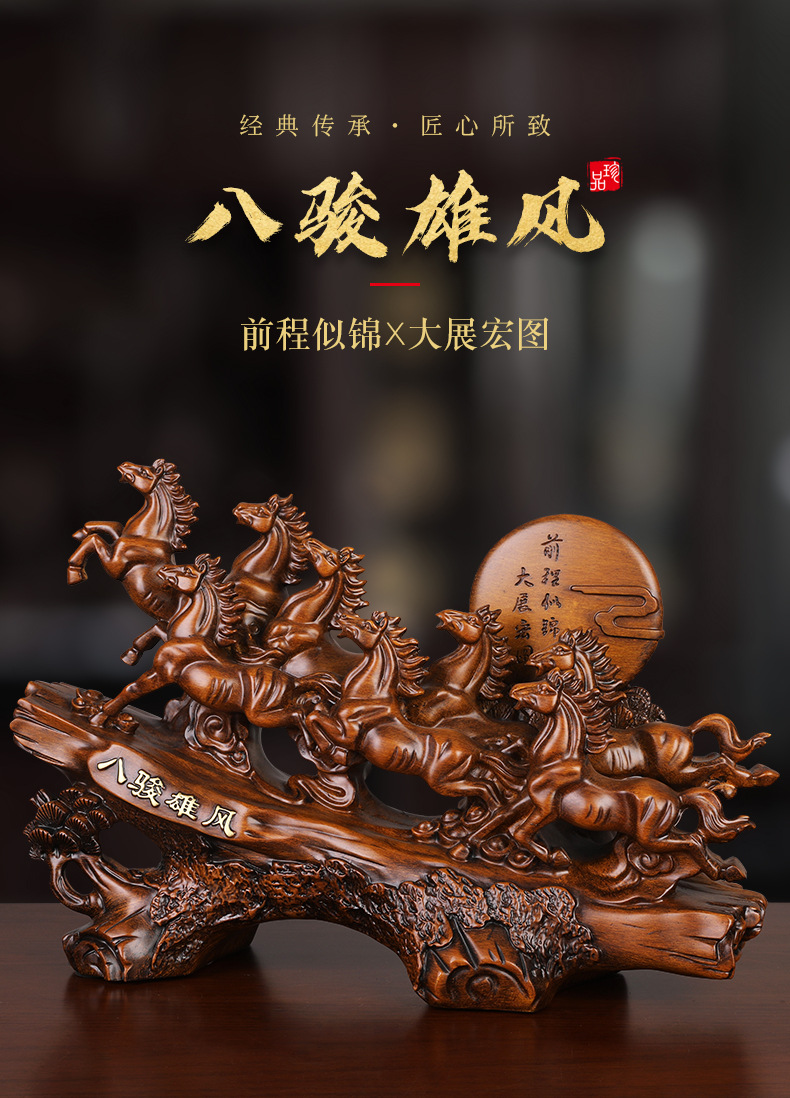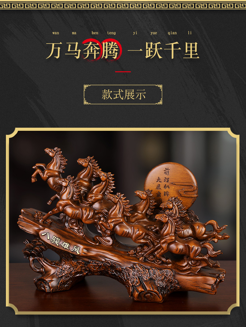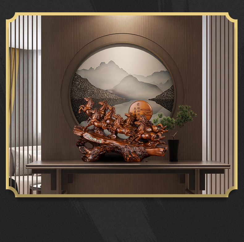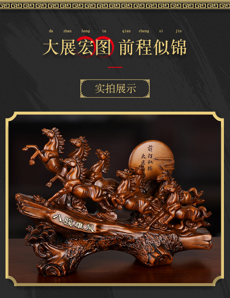중국 스타일 여덟 말 장식품 수지 공예 사무실 거실 와인 캐비닛 홈 장식 장식품 오프닝 선물