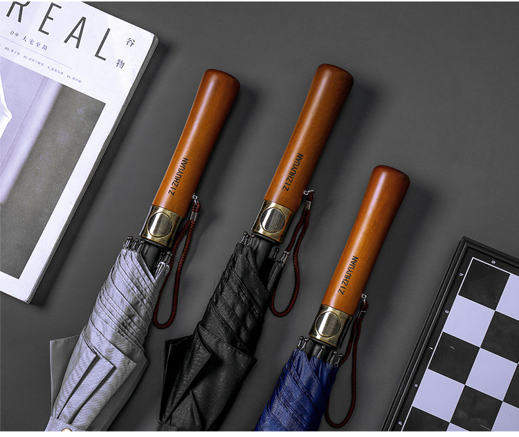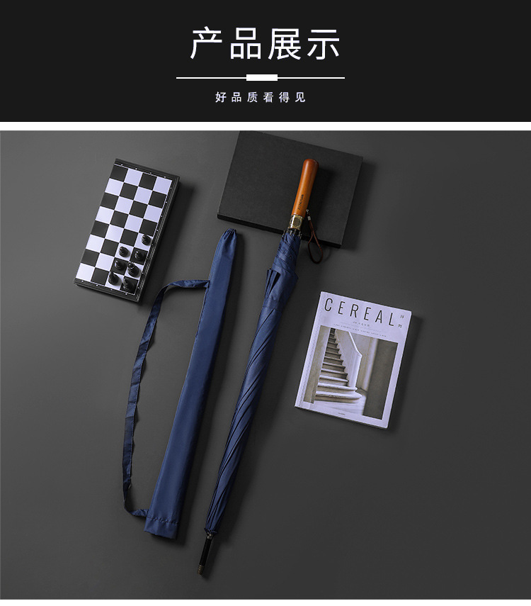 대형 긴 손잡이 직선 자동 우산, 복고풍 원목 손잡이 골프 우산, 고급 선물용 광고 우산, 맞춤형 로고스토어 가기