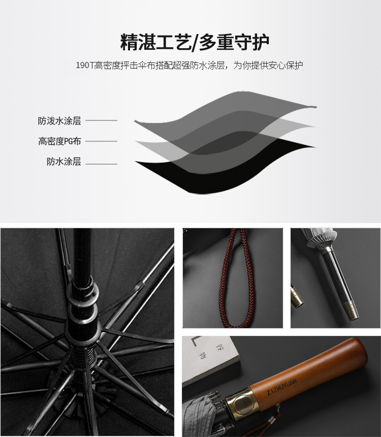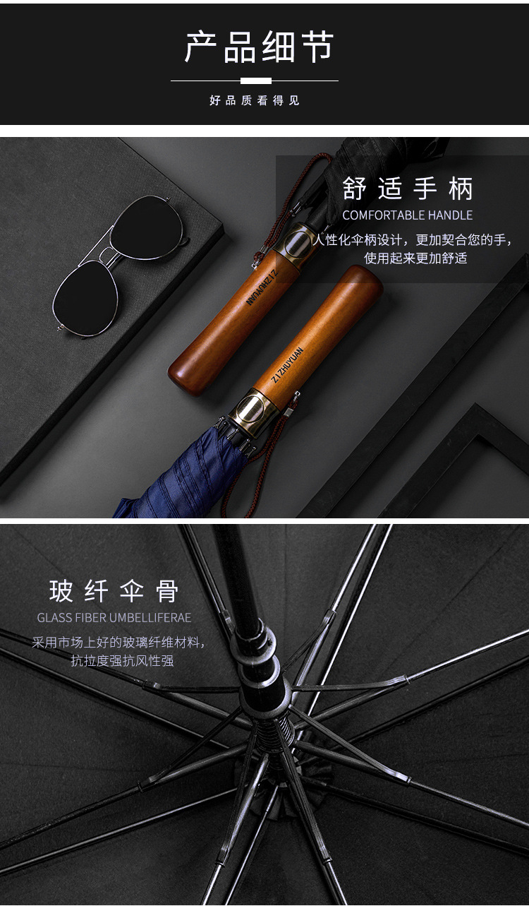 대형 긴 손잡이 직선 자동 우산, 복고풍 원목 손잡이 골프 우산, 고급 선물용 광고 우산, 맞춤형 로고