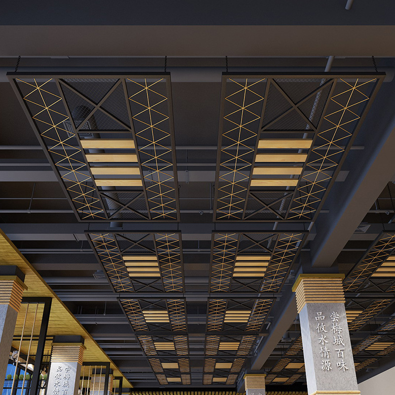 철 레스토랑 하늘 격자 천장 바 우유 차 가게 호텔 산업 스타일 중공 벌집 단단한 나무 장식 천장스토어 가기