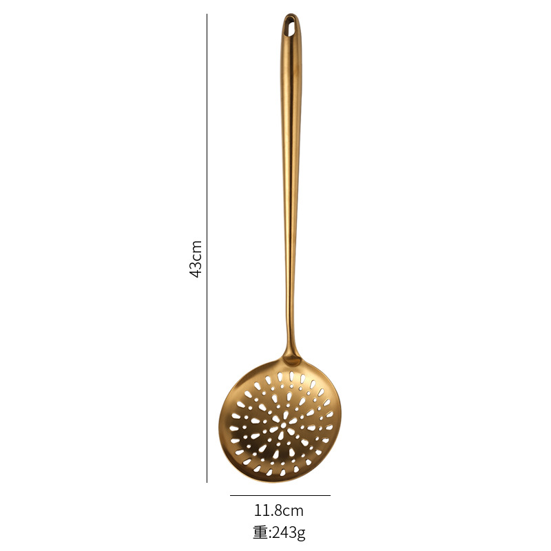 크로스 보더 스테인레스 스틸 주걱 주방 요리 도구 긴 손잡이 숟가락 큰 누출 튀김 삽 황금 선물 세트