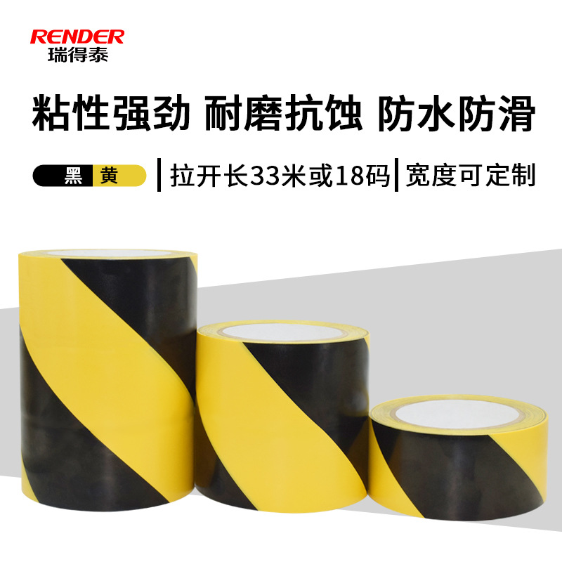 PVC 흑백 경고 테이프 지상 얼룩말 테이프 지상 33 m 접지 노란색과 검은 색 선 바닥 경고 테이프 표시