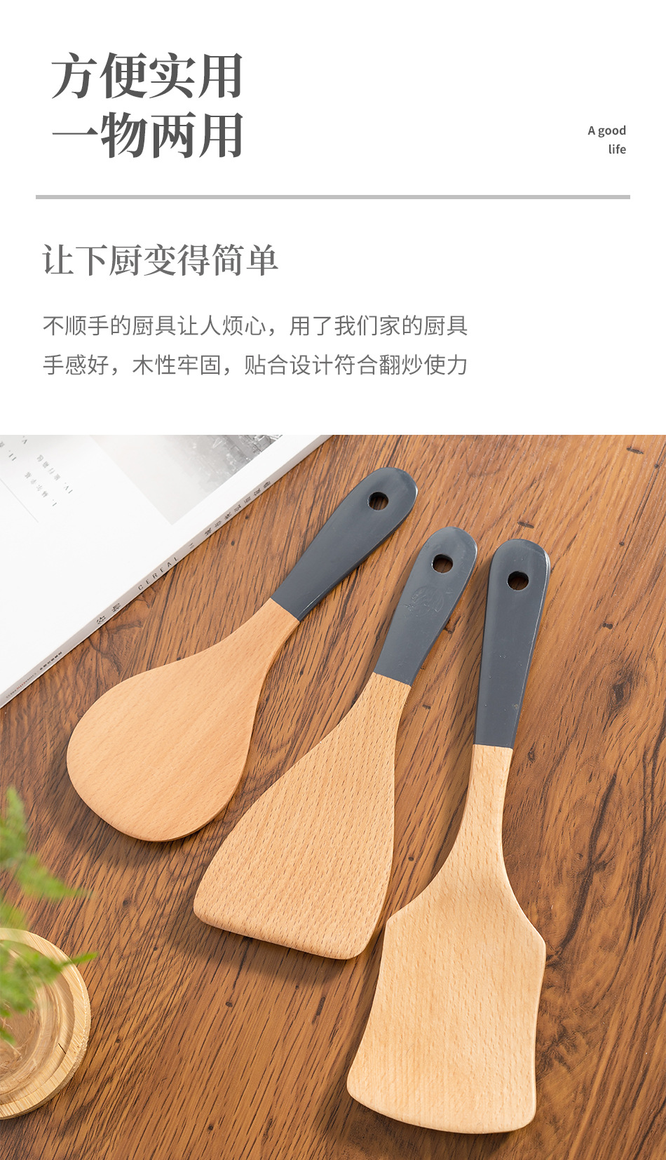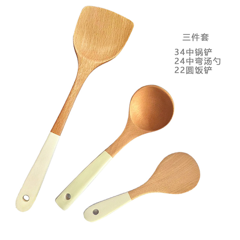 • 밀크 화이트 핸들 너도밤 나무 34 중간 주걱