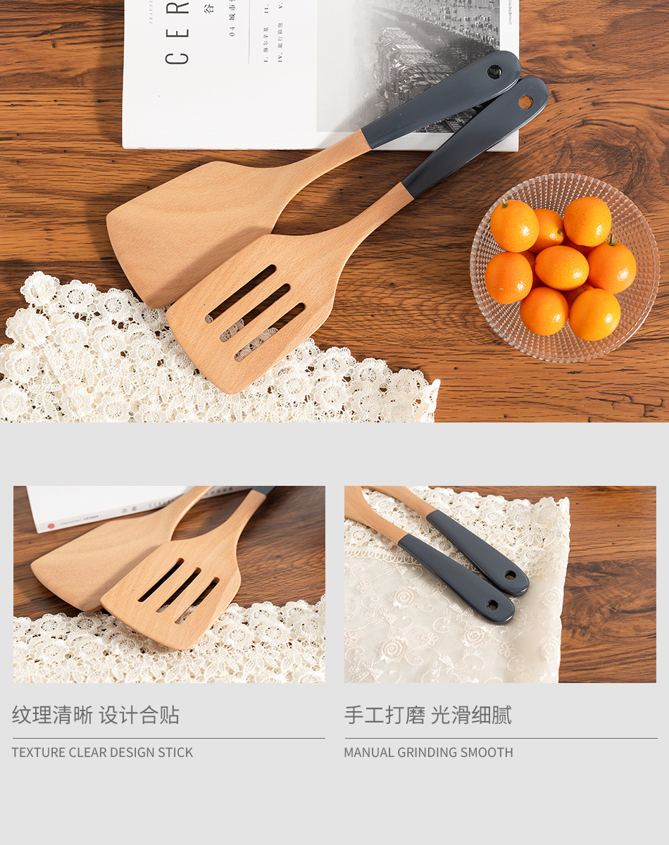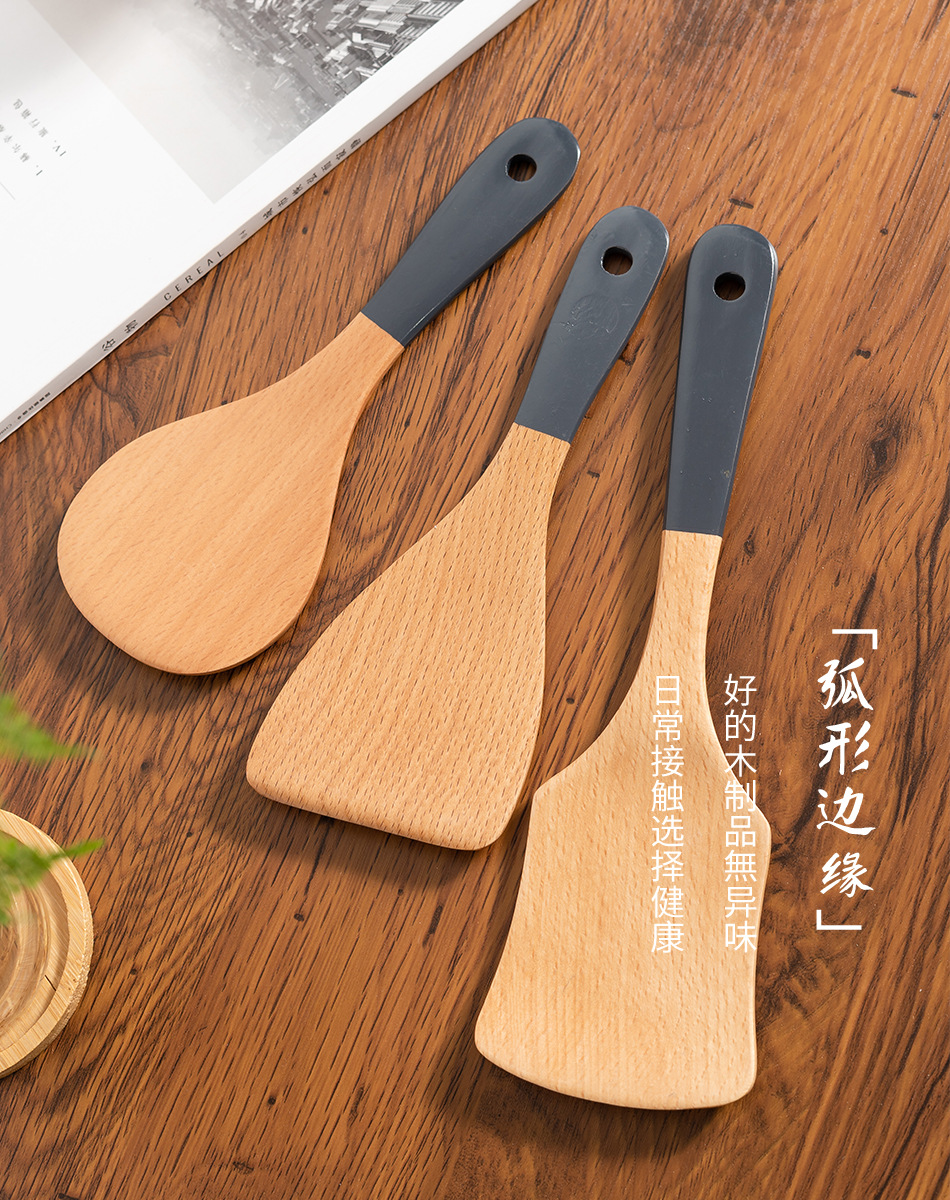 • 블루 핸들 너도밤 나무 34 중간 주걱