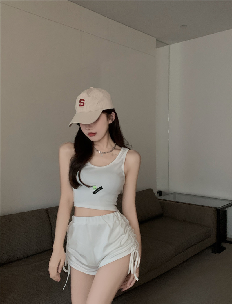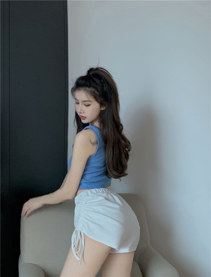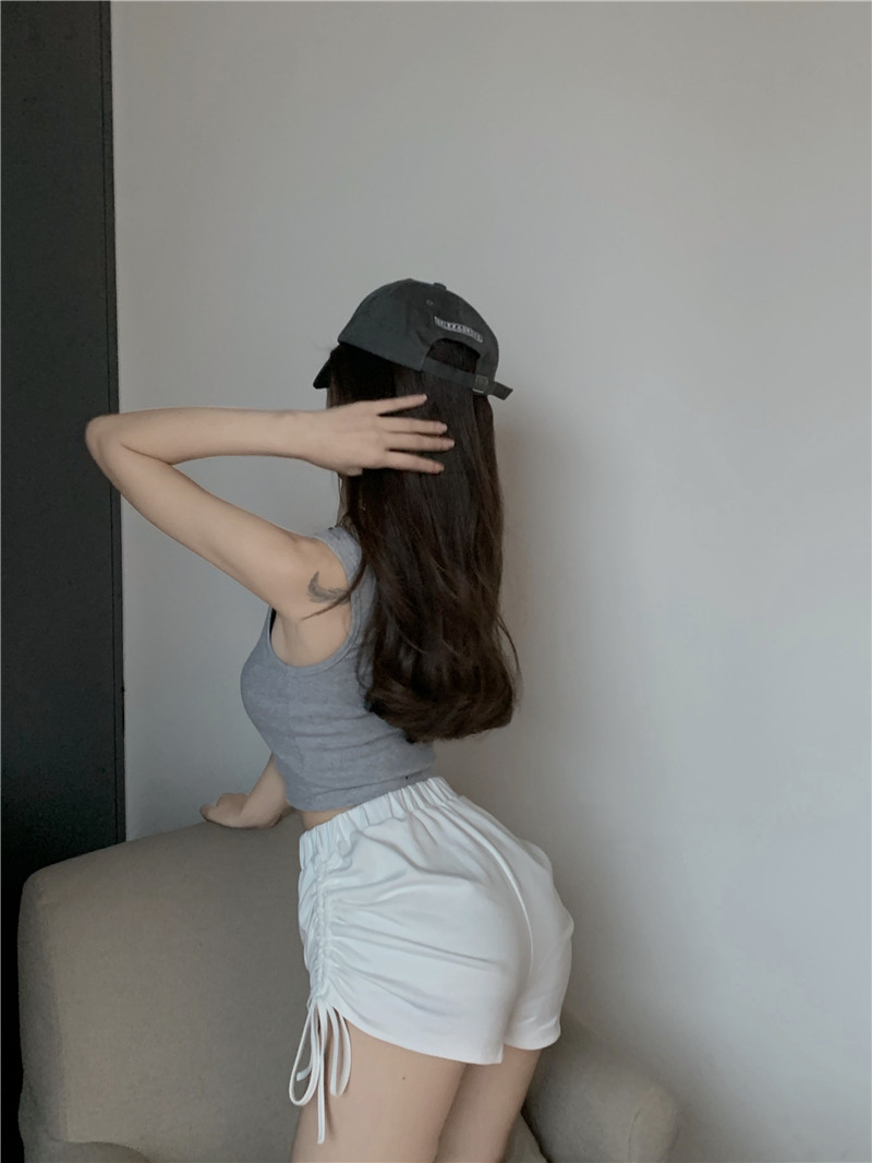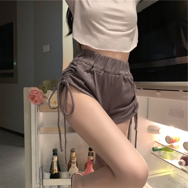 코튼 드로스트링 스트랩 섹시한 반바지 캐주얼 바지 여성용 2023 여름 새로운 유럽과 미국 향신료 소녀 단색 하이 웨이스트 핫 팬츠 트렌디스토어 가기