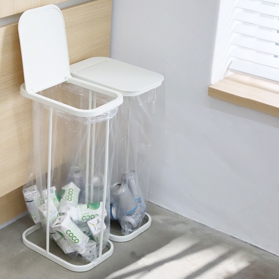 • 흰색 대형 3구 쓰레기통 거치대 (조립식)