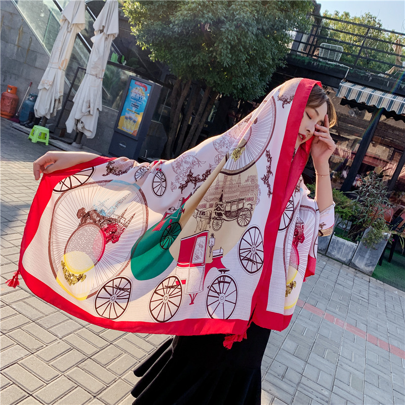 스카프 여성용 에어컨 룸 숄 이중 사용 봄과 여름 얇은 자외선 차단제 숄 여행 휴일 비치 타올 능직 면 스카프